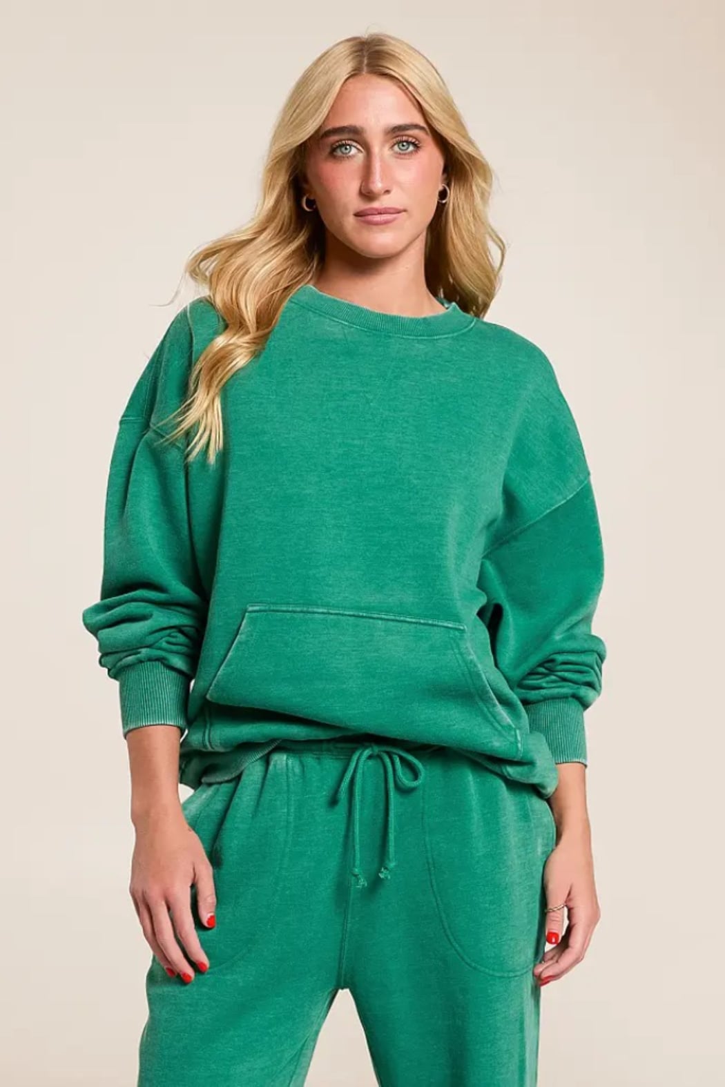 Settle into comfort with this oversized pullover. Ideal for laid-back errand days, it’s an effortless go-to. Pair it with the matching pants for an easy, put-together off-duty look.
