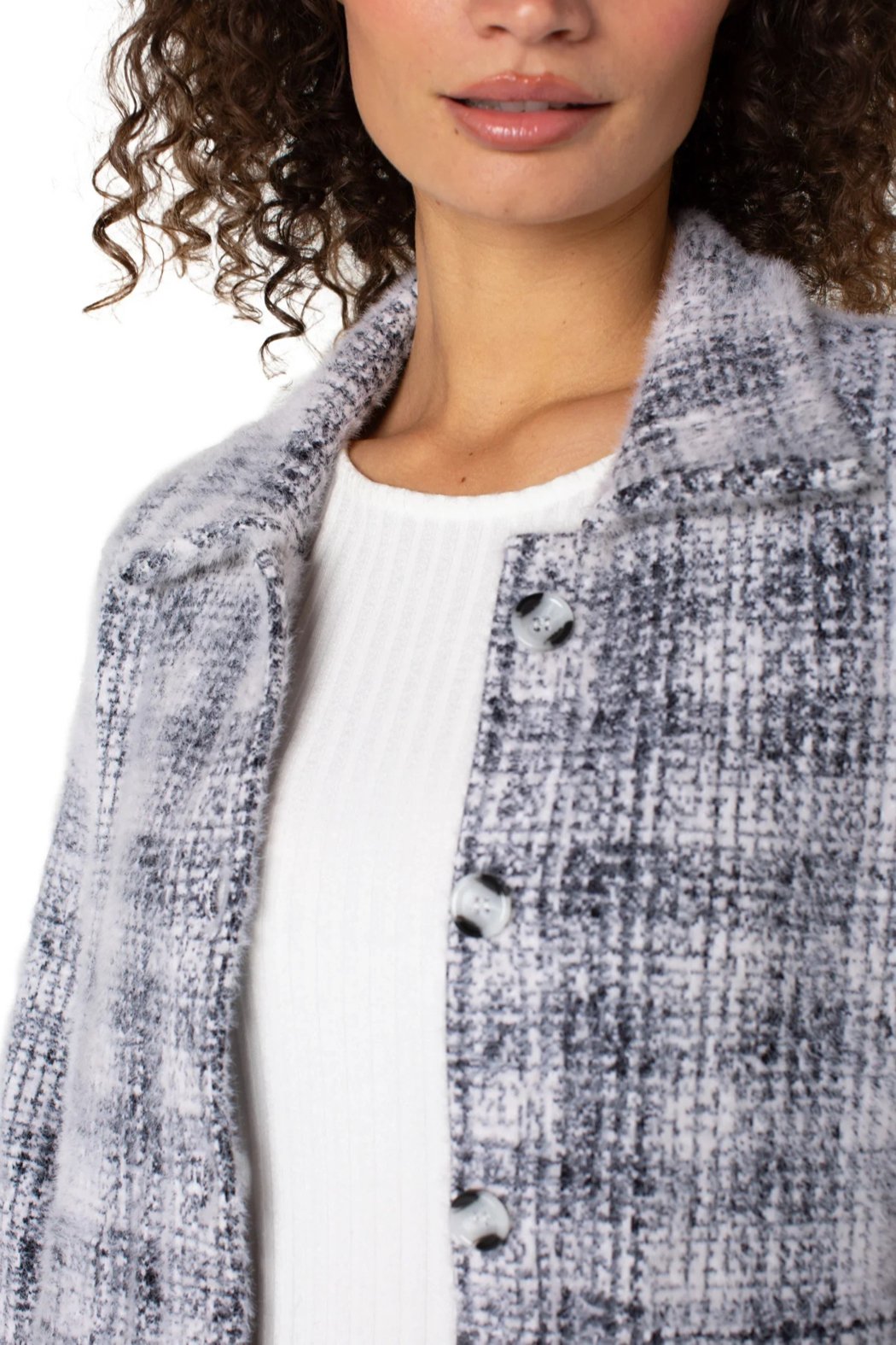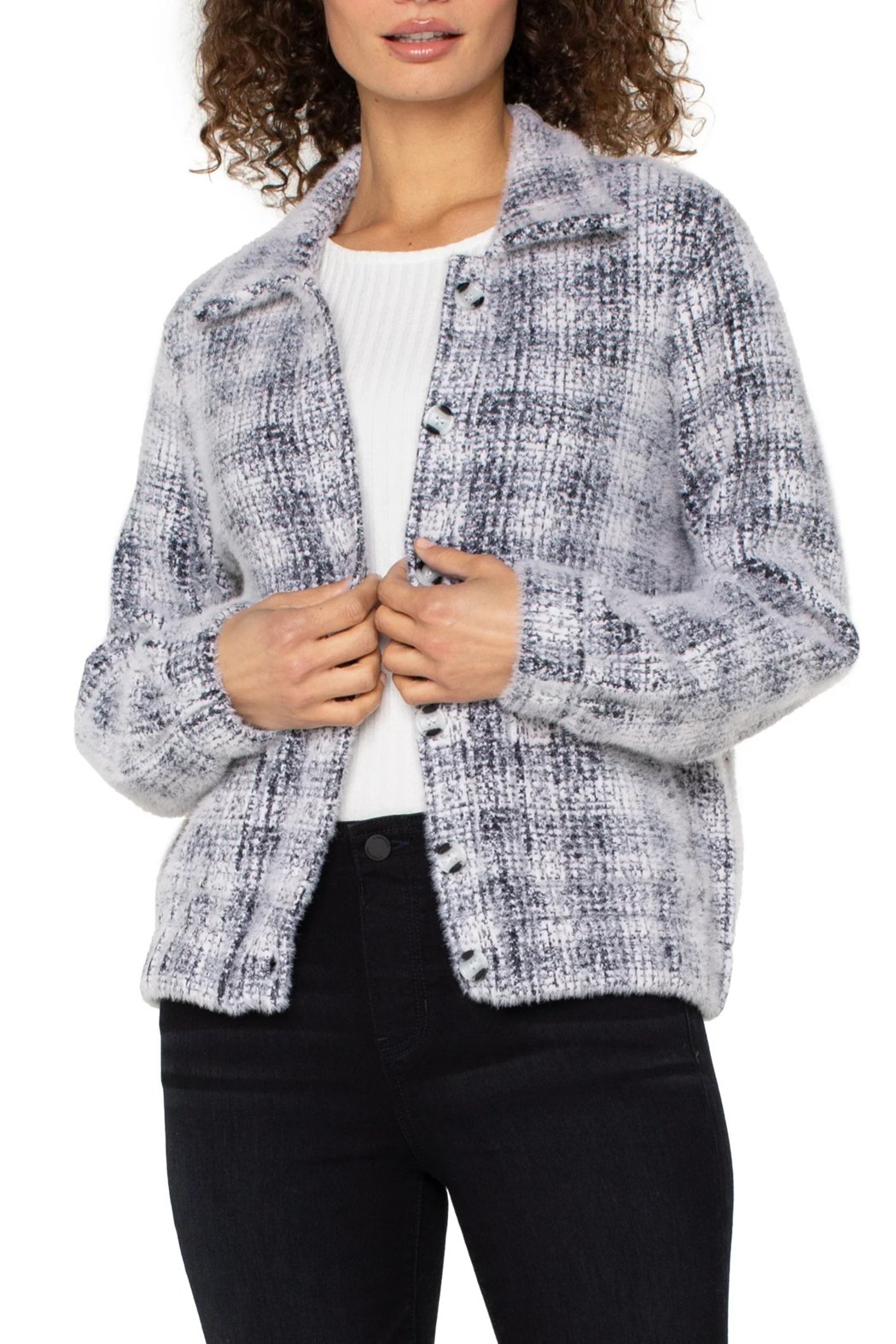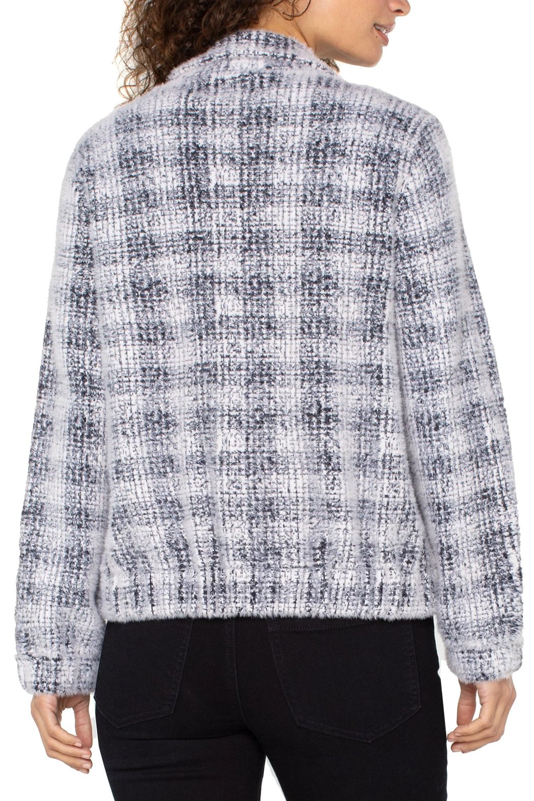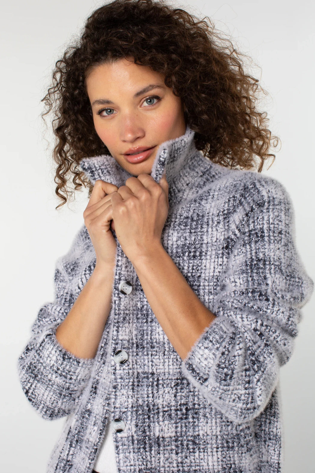 This collared bomber sweater jacket combines classic plaid with a modern silhouette. Featuring a button front and double-layer collar, it offers a structured yet relaxed fit that is perfect for everyday wear. A versatile piece, it adds effortless style to any outfit.