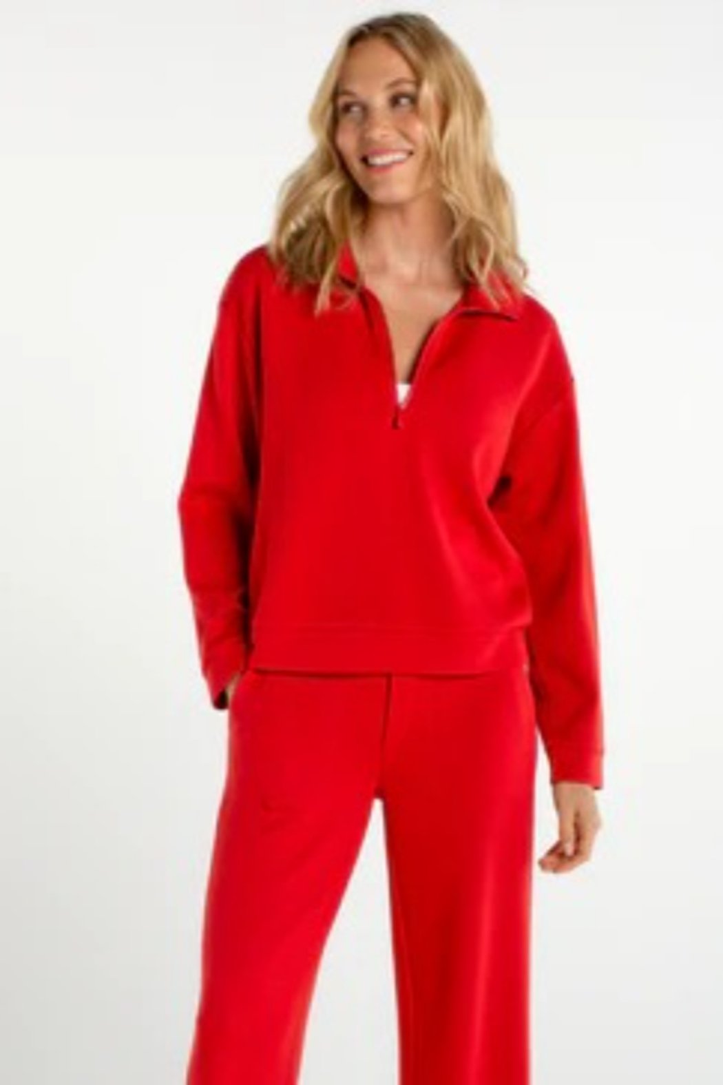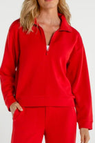 Stay effortlessly stylish and comfortable with our Half Zip Pullover Long Sleeve Top in Fire Brick. This relaxed-fit top features a half-zip neckline for easy wear and a modern, sporty touch. Soft, cozy fabric and long sleeves make it perfect for layering or wearing on its own. Pair it with matching bottoms or your favorite jeans for a casual, pulled-together look.