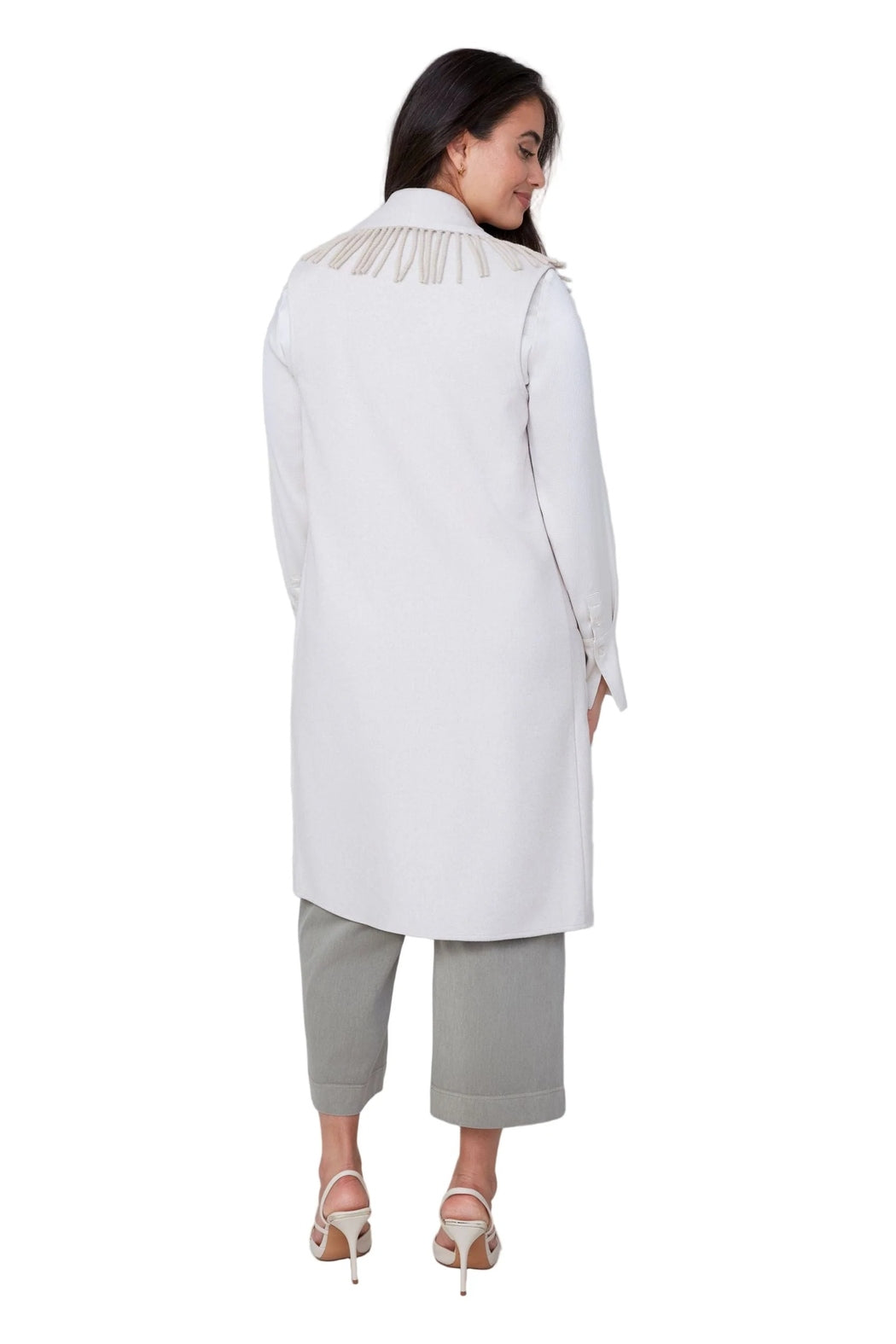 Elevate your look with the Renuar Oatmeal Long Knit Vest - the perfect piece to take your outfit from nice to standout. Designed in a flattering longer length, it features stylish fringe detailing along the lapel and down the front for added texture and movement. With an open-front design and no closure, it layers effortlessly over any ensemble.