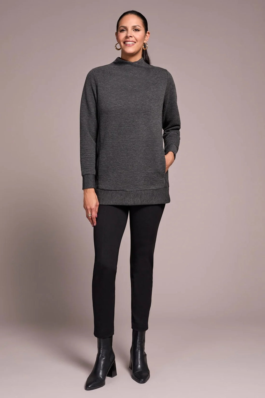 Effortlessly elevate your casual look with this tunic, crafted from a soft quilted knit for cozy comfort and texture. The longline silhouette, mock neckline, and long sleeves offer flattering coverage and warmth, making it an ideal pick for chilly days.