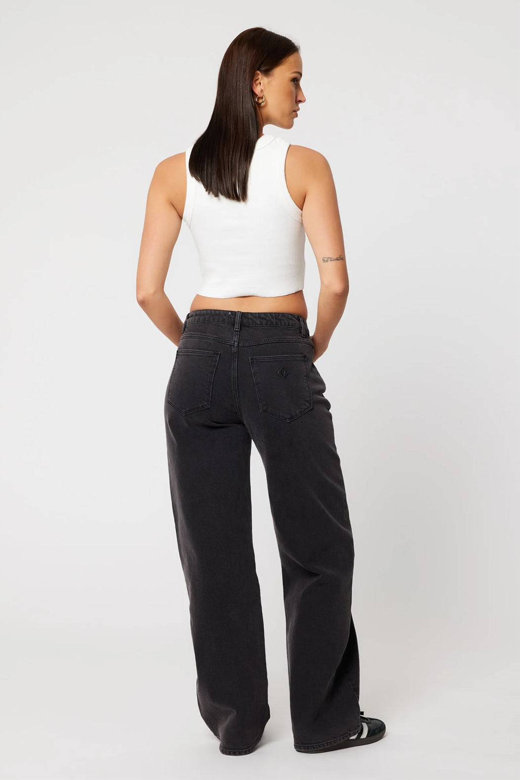 The 95 Mid Baggy Jean sits just above the hips and features a relaxed leg profile and elongating length. The washed black color is inspired by the stonewashed jeans of the 80's.