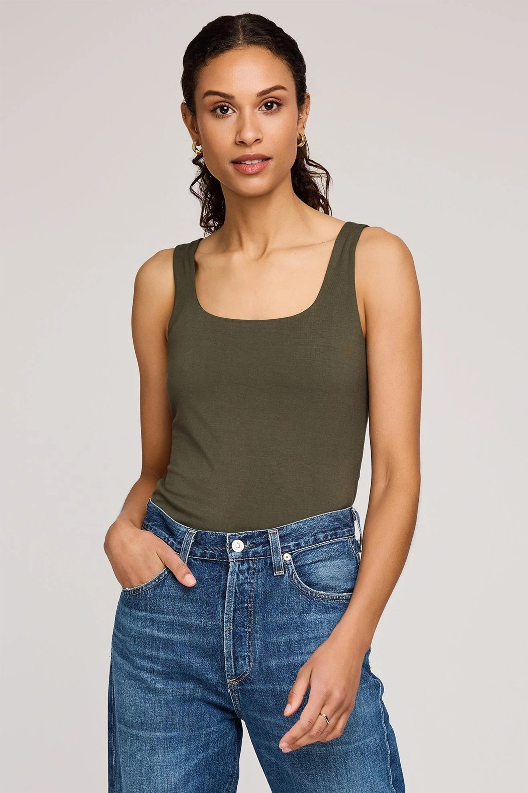 The Blanche tank is made of super soft EcoVero rayon jersey and is double lined for ease of wear. The rounded square neckline is perfect for everyday wear or dressed up for date night. Pair with the Pleaser Wide Leg Jean for an effortless chic look.