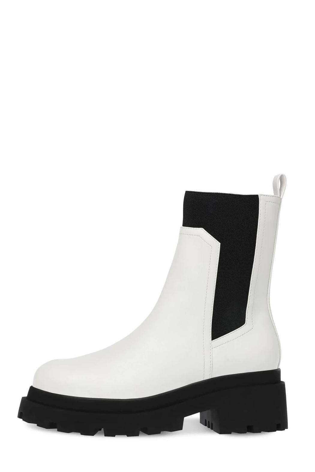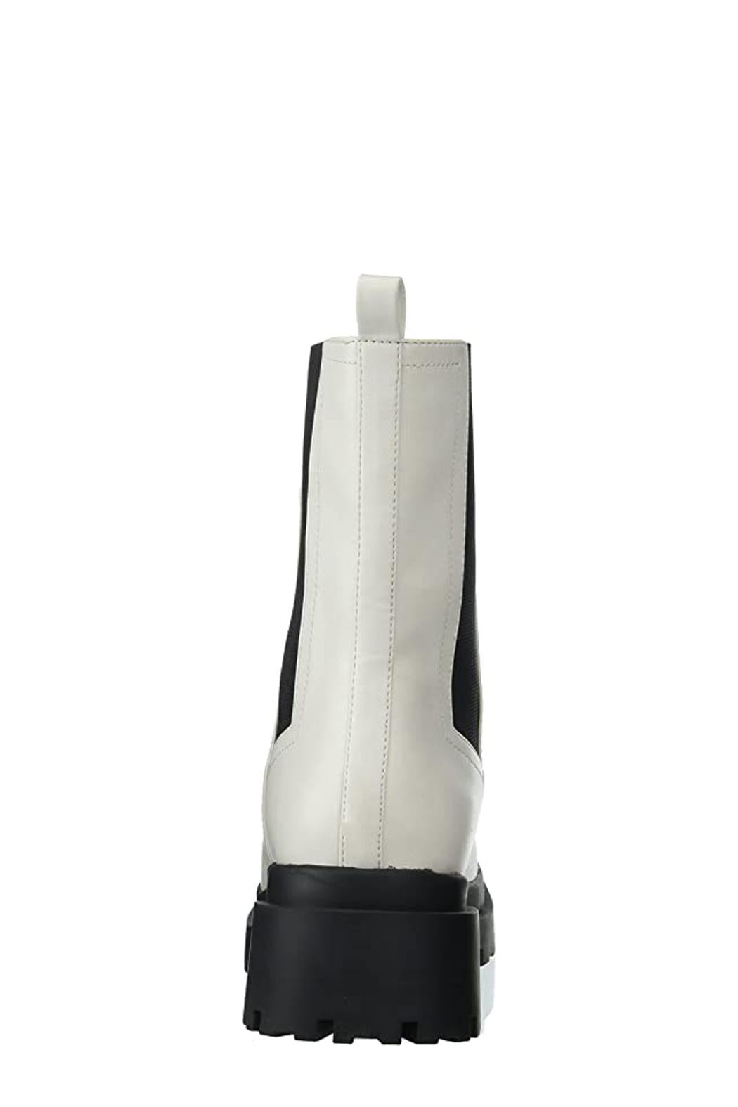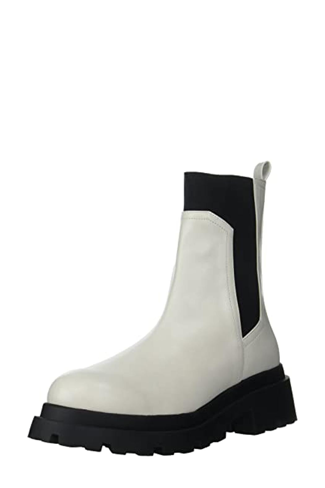 These off white booties feature an elastic textile detail on the ankle and a thick lug sole. The perfect combination of function and style, these boots will keep your feet warm and dry in the winter months and look great paired with jeans and a sweater or with black tights and a mini dress.