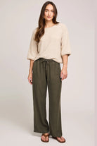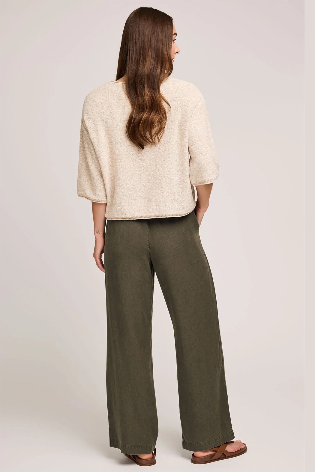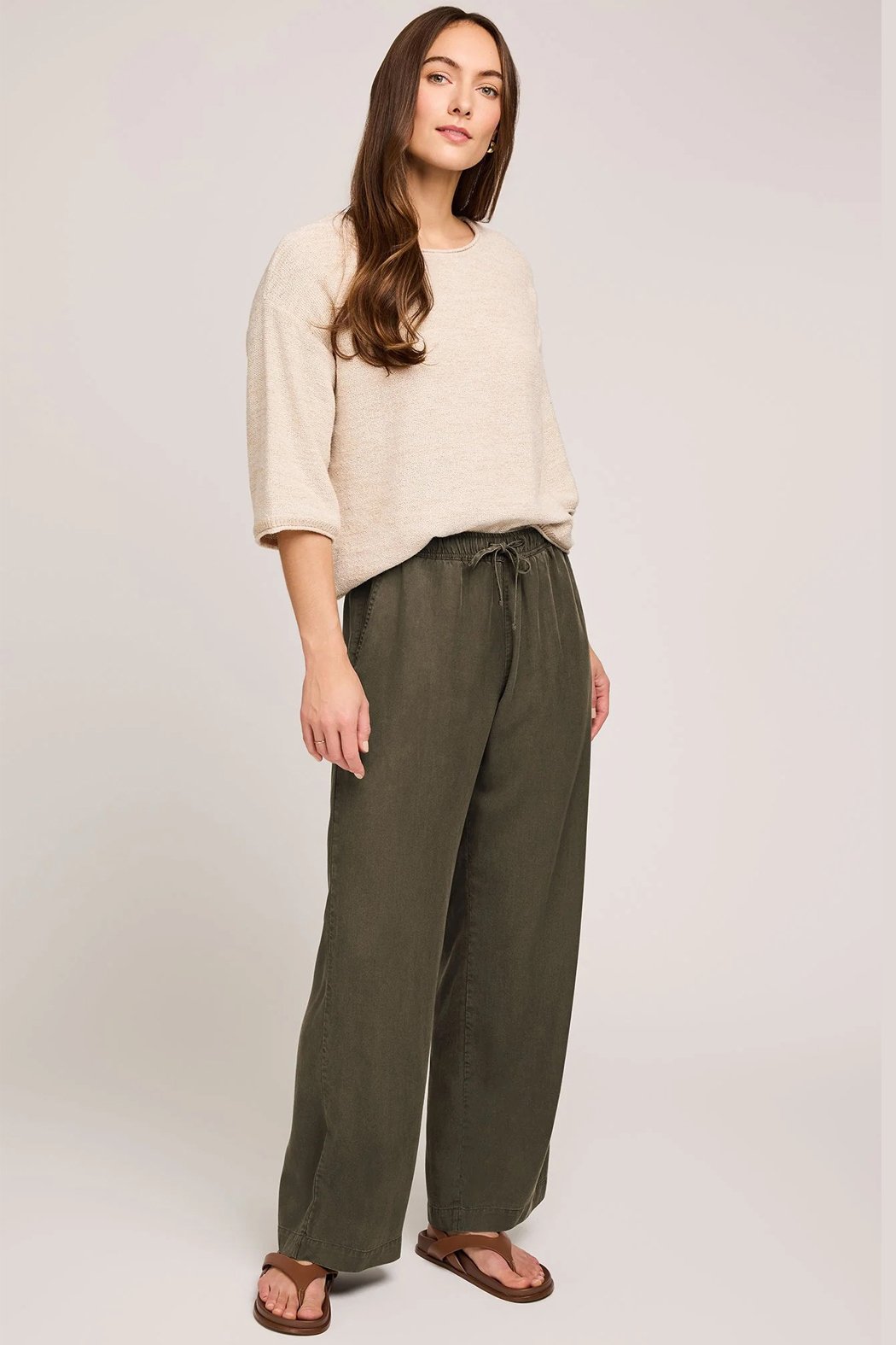 The Gabriel pant is made of lightweight tencel twill fabric that has been garment dyed giving it a dimensional look and soft lived in feel. Features include slash pockets and an elasticated waistband with adjustable drawcord. Follow @lunaboutiquecanton on instagram and DM us with any questions :)
