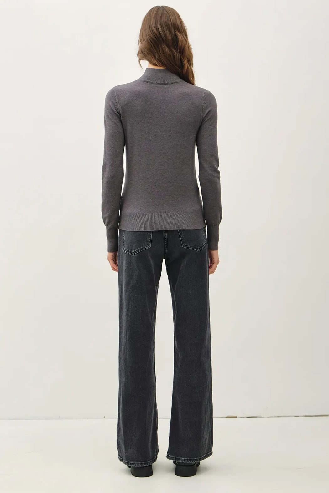 This ultra soft lightweight mock neck sweater is fitted without clinging and perfect for layering in the fall/ winter months.