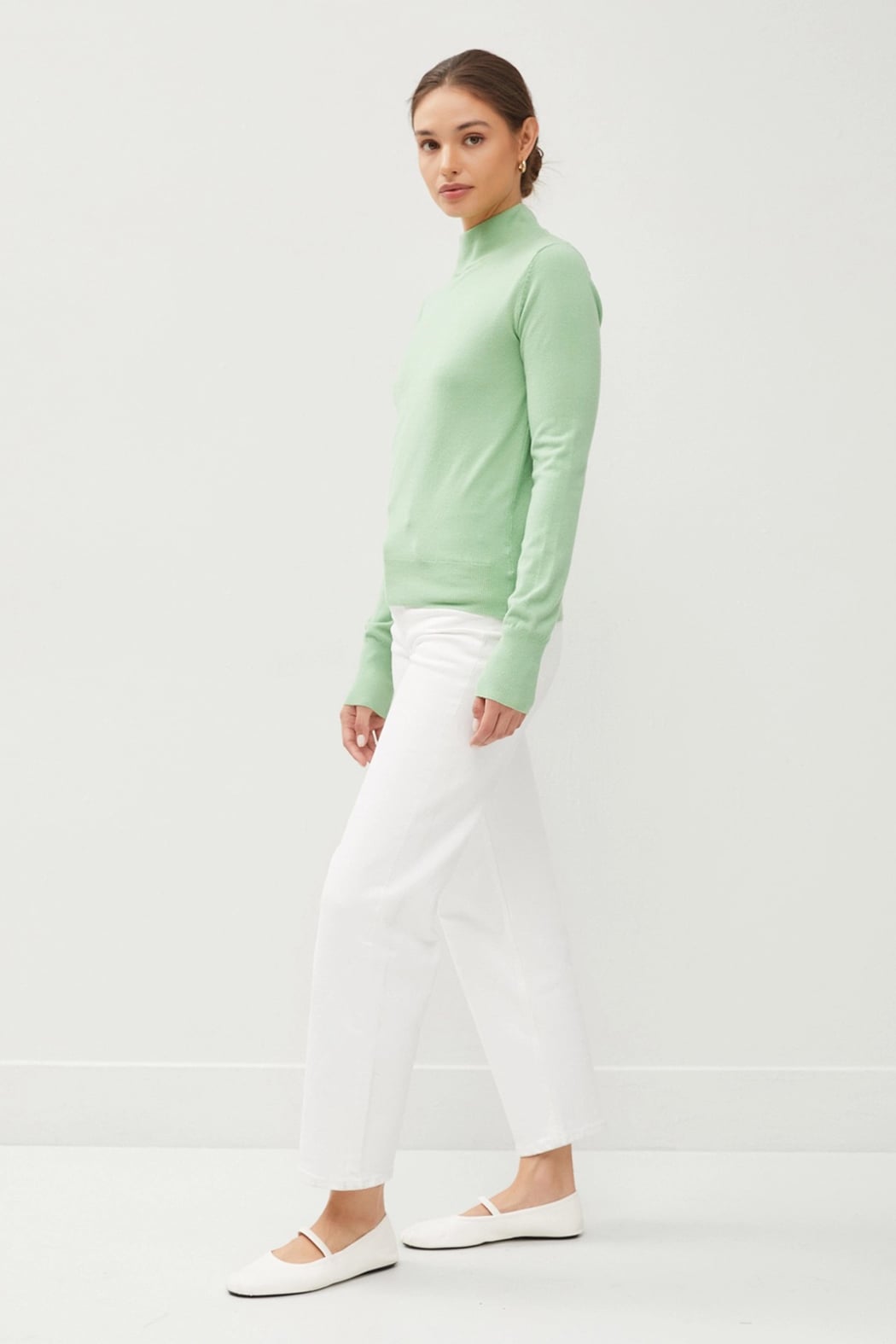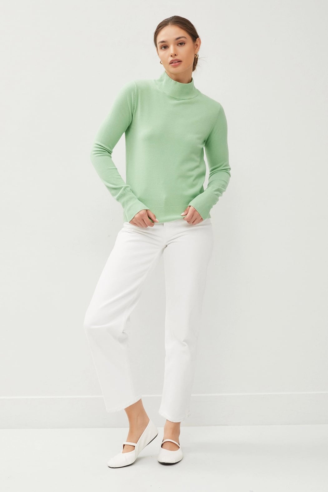 This ultra soft lightweight mock neck sweater is fitted without clinging and perfect for layering in the fall/ winter months.