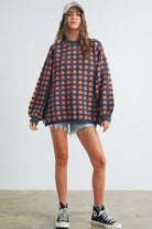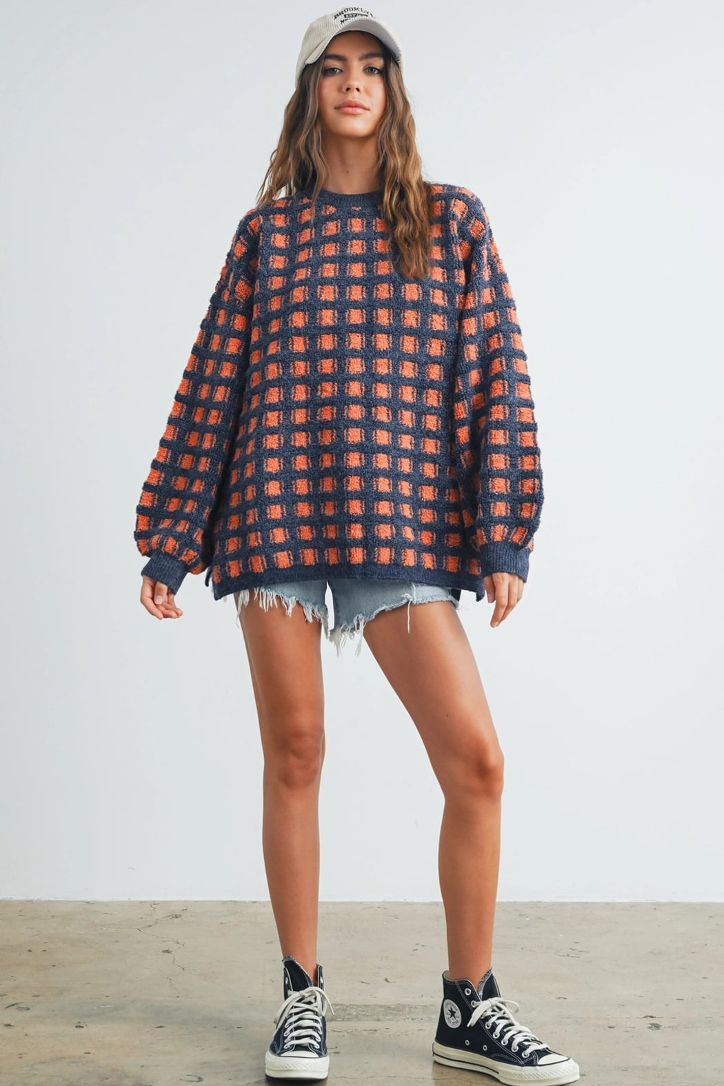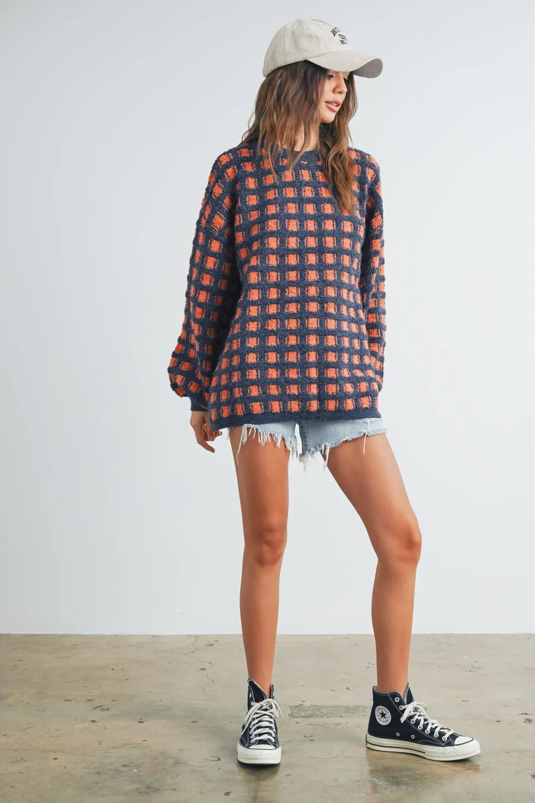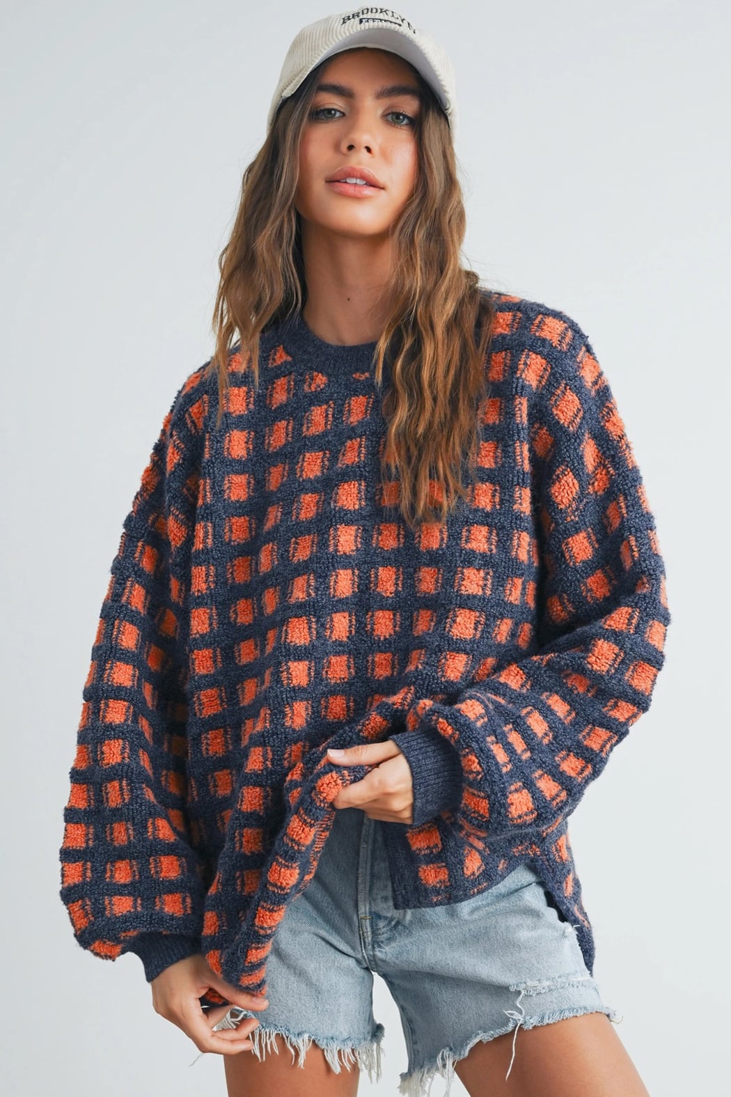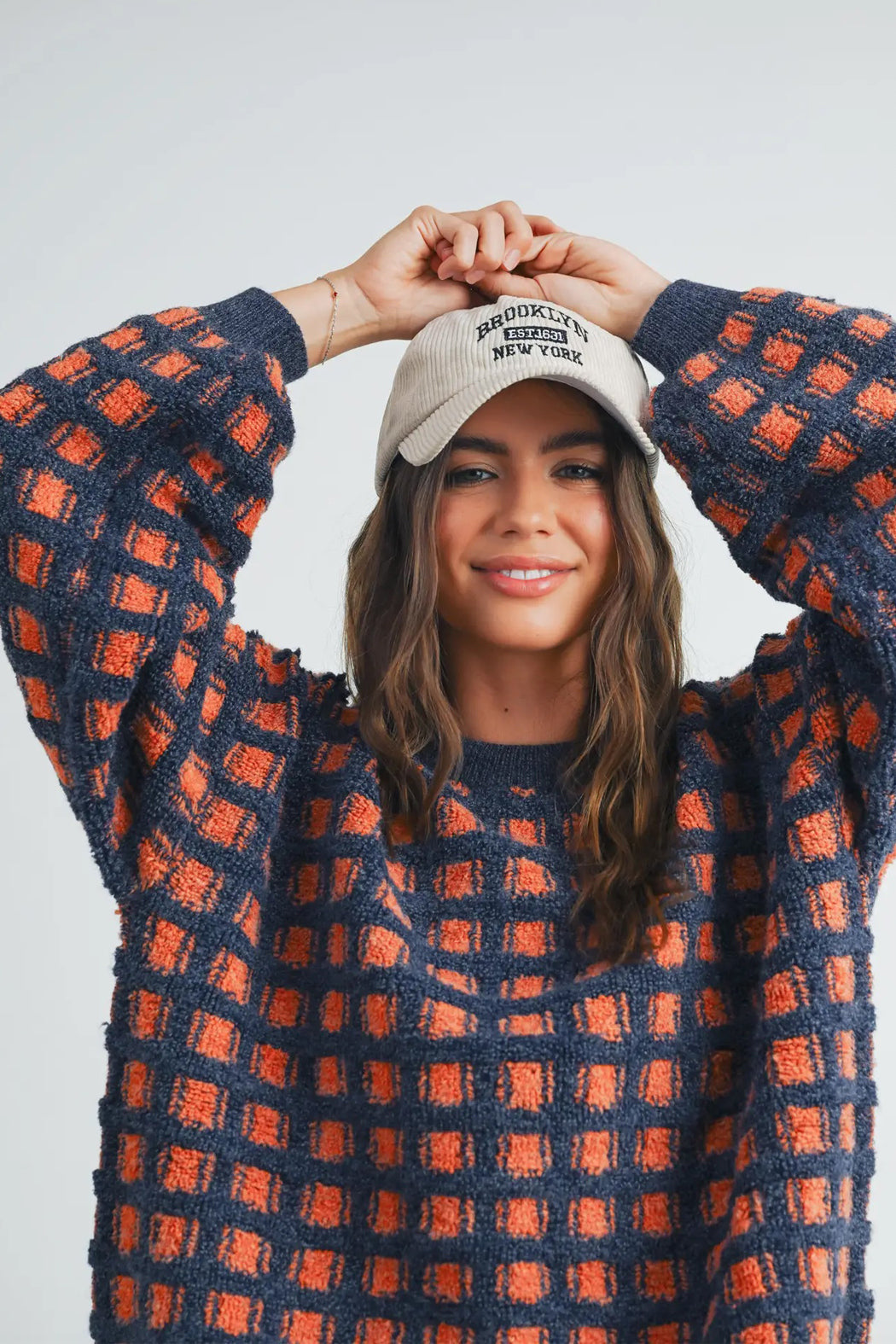 Stay cozy and stylish in the Reggie Check Sweater. Featuring a classic checkered pattern in orange and navy, this sweater is designed for comfort and a relaxed fit, perfect for layering during cooler months. The oversized silhouette adds a trendy touch, making it a versatile piece for any wardrobe. Whether you're lounging at home or stepping out for a casual day, this sweater ensures you look effortlessly chic.