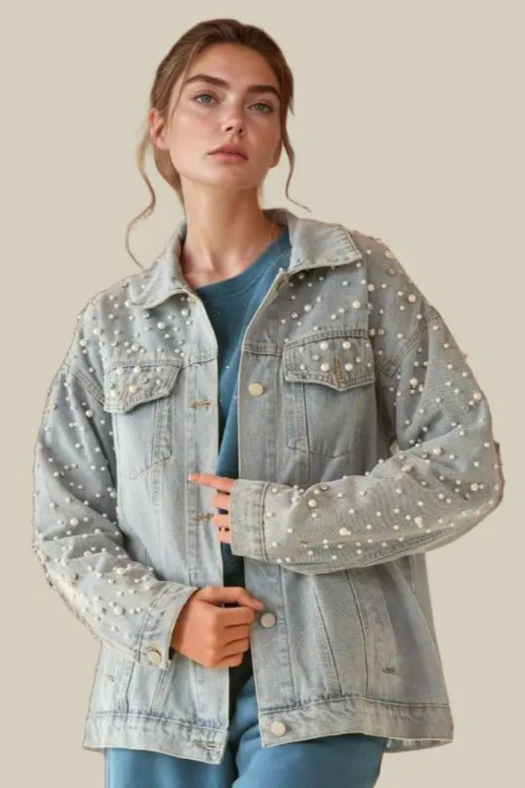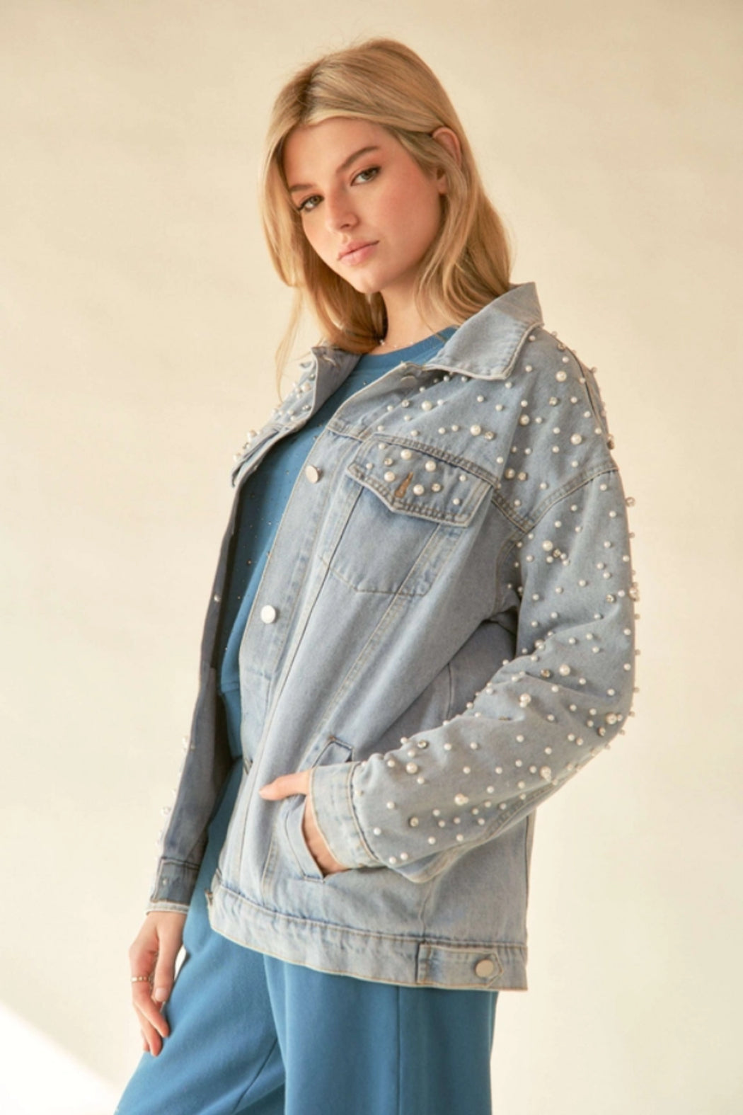 Pearl Rhinestone Denim Jacket