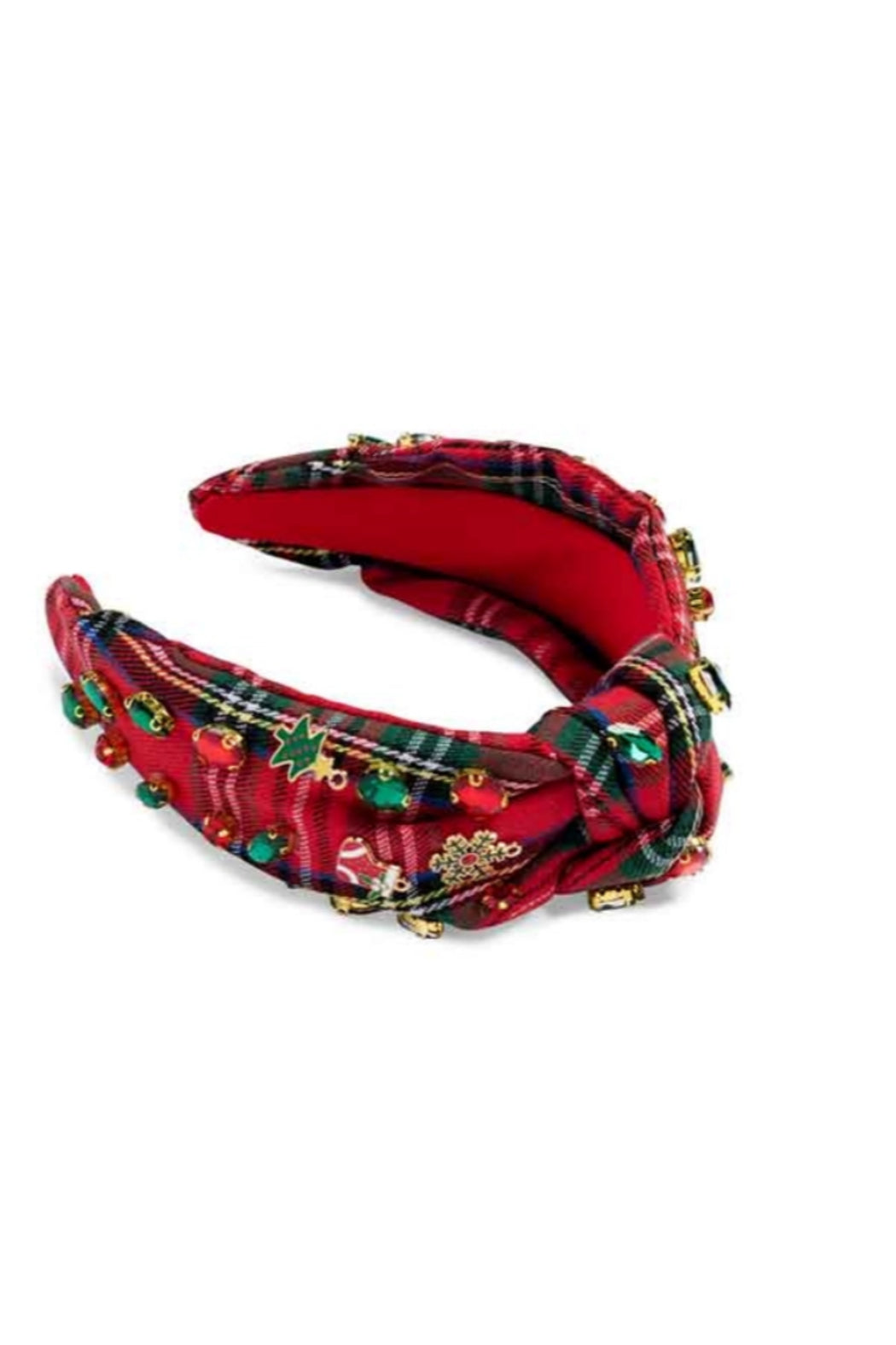 Shiraleah's Plaid Merry Headband brings the cheer! Wrapped in classic red tartan and sparkling with colorful beads and whimsical holiday charms, this accessory is a merry must-have. Its structured, knotted design adds a fun and polished pop to any holiday look—whether you're trimming the tree or sipping cocoa fireside. It’s equal parts playful and polished, making it perfect for all your holiday happenings.