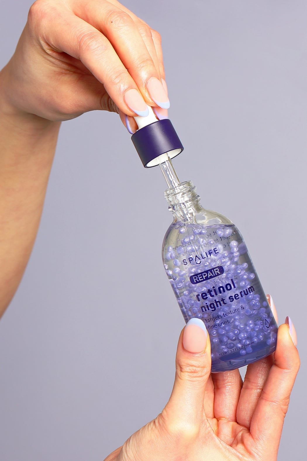 This Repair Retinol Night Serum is a lightweight evening treatment that helps target texture and fine lines while you sleep. The clear gel features purple encapsulated beads suspended in a glass dropper bottle for precise application. My Spa Life formulated this serum to visibly smooth skin and support nightly renewal with retinol. Keep it in your nighttime routine layered under moisturizer for best results.