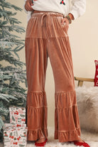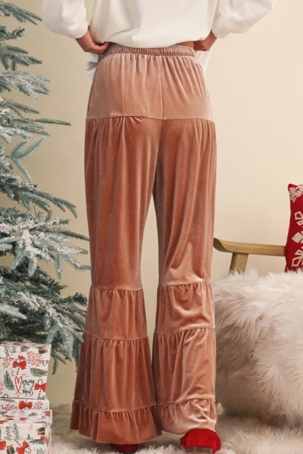 Soft velvet and sweeping tiers make these Velvet Tiered Bell Bottoms a standout wardrobe piece. The relaxed bell-bottom silhouette falls from a comfortable elastic drawstring waist for an easy, flattering fit. Apparella balances cozy comfort with retro-inspired style, perfect for casual days and laid-back gatherings.