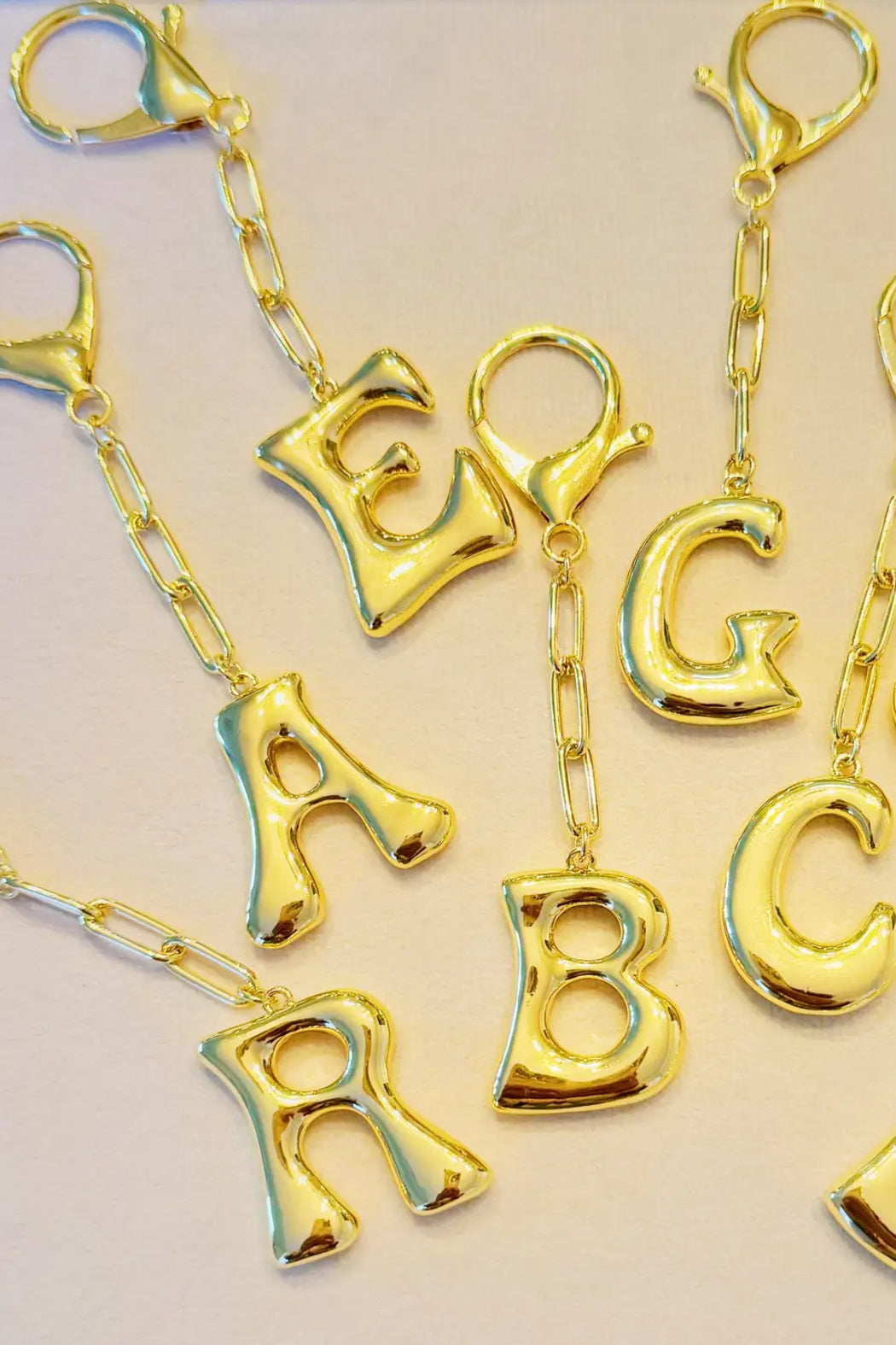 Add a touch of whimsy to your bag with our chic and unique this bag charm. Featuring a edgy balloon letter design, this charm is perfect for layering with other pieces to create a personalized look. Elevate your style with this fun and versatile accessory.