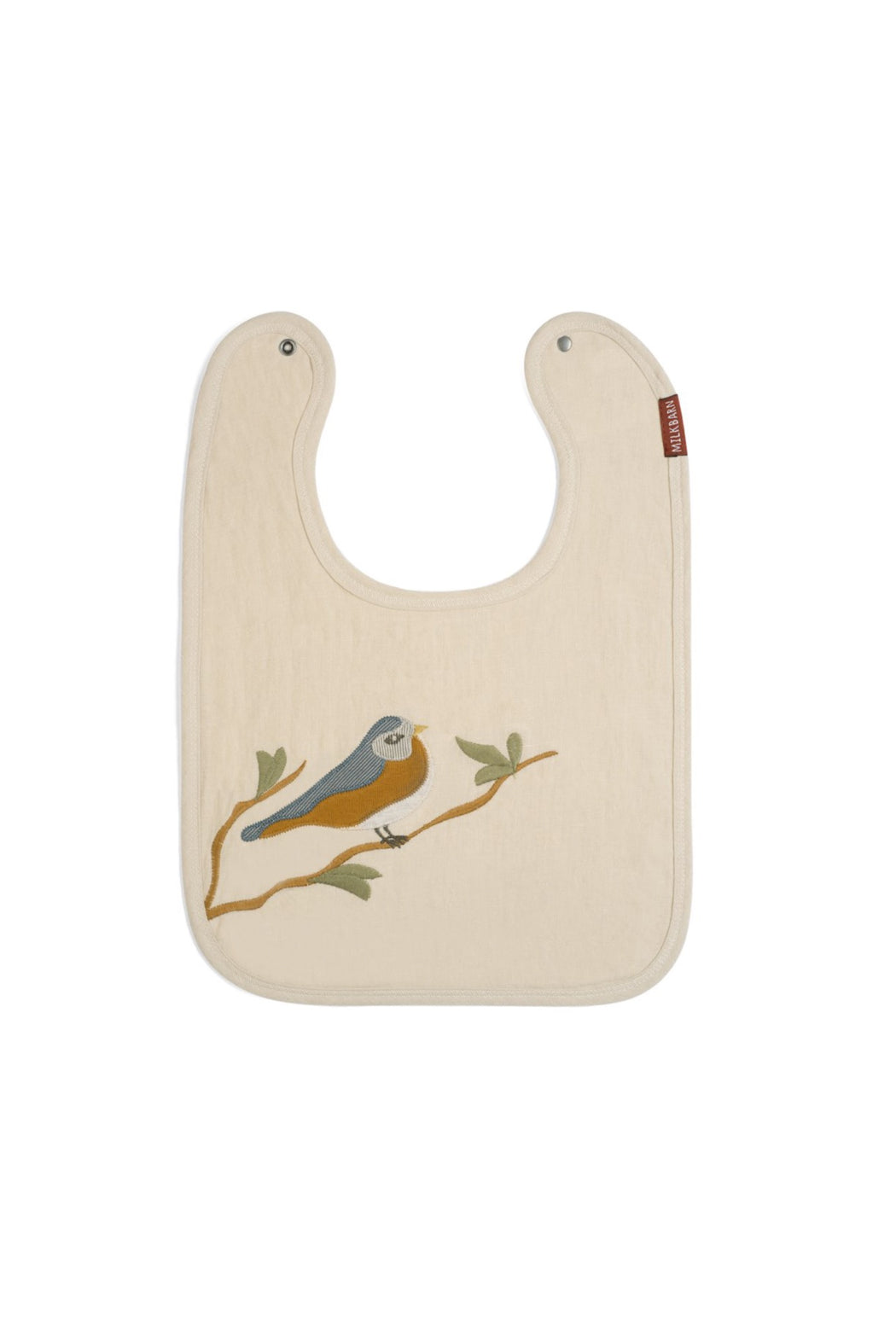 Keep mealtime messes at a minimum and elevate your little one’s outfit with stitched and embroidered fabric Appliqué Linen Bib. Every Bib is generously sized. Appliqué Linen Bib with two layers of soft linen and an absorbent cotton middle layer. Added details include a low-sheen thread with a narrow stitching process, fabric edging, and a ring-snap closure.