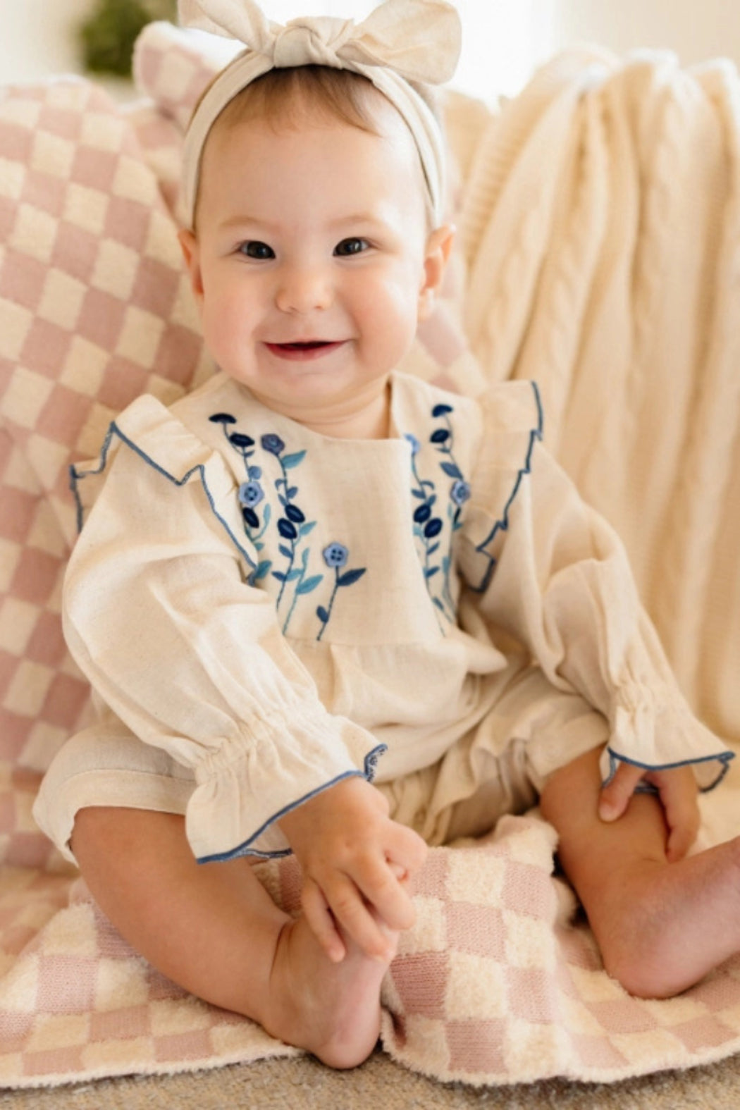 Atrani Embroidered Baby Romper & Headband (Organic)