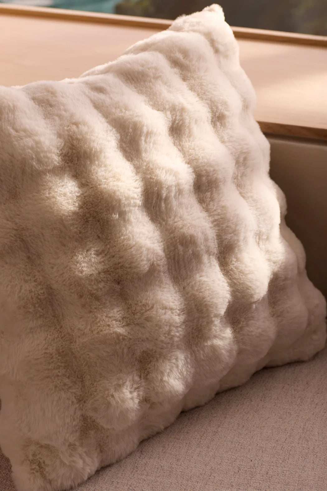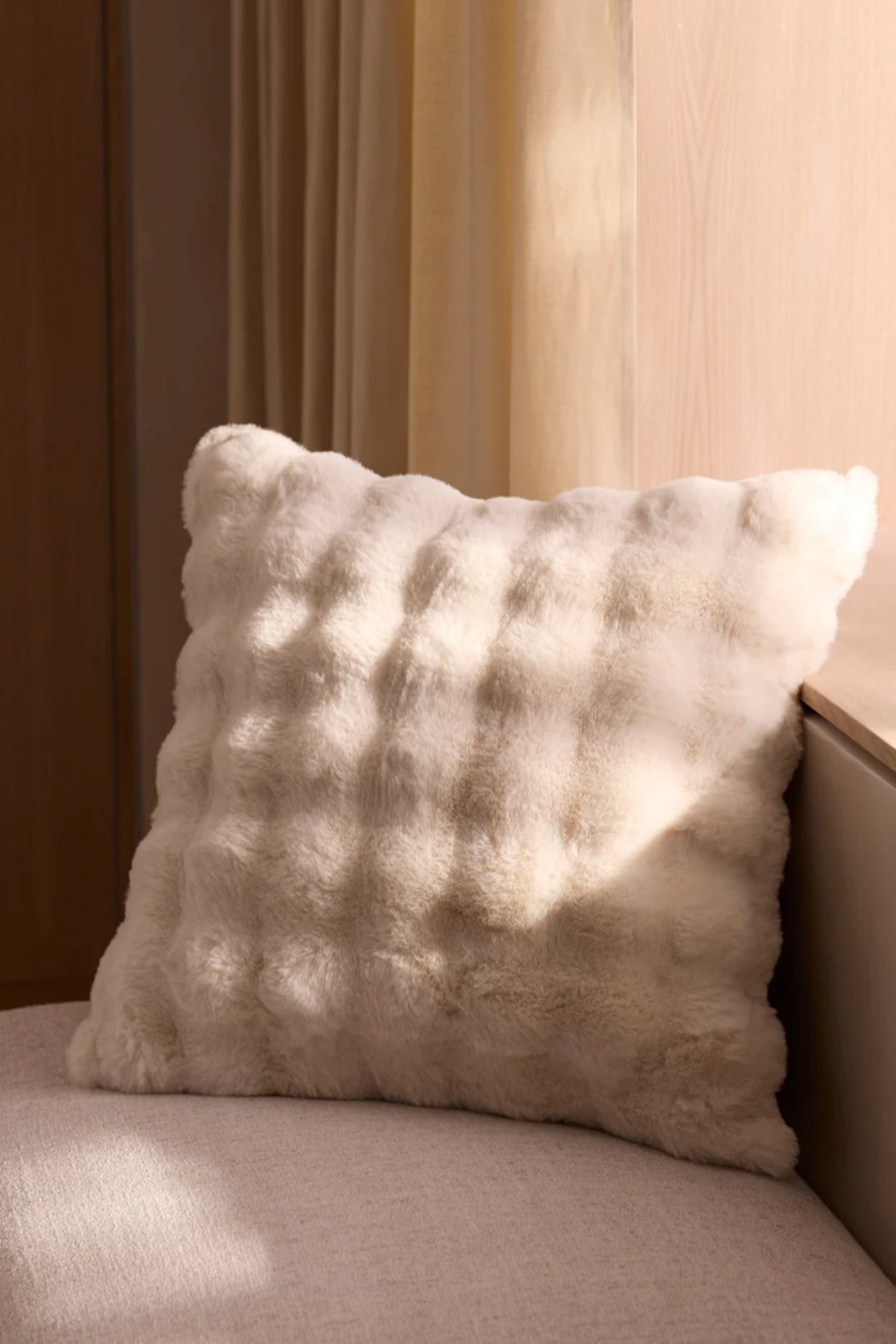 Soft and plush, the Bubble Cuddle Pillow brings a tactile, cozy touch to any sofa or bed. The pillow features a faux-fur surface with subtle raised bubble texture for visual interest and extra softness. Lightweight and squeezable, it’s perfect for lounging, layering, or adding a warm accent to a neutral room. Designed for easy styling, the pillow pairs well with knit throws and relaxed, modern decor.