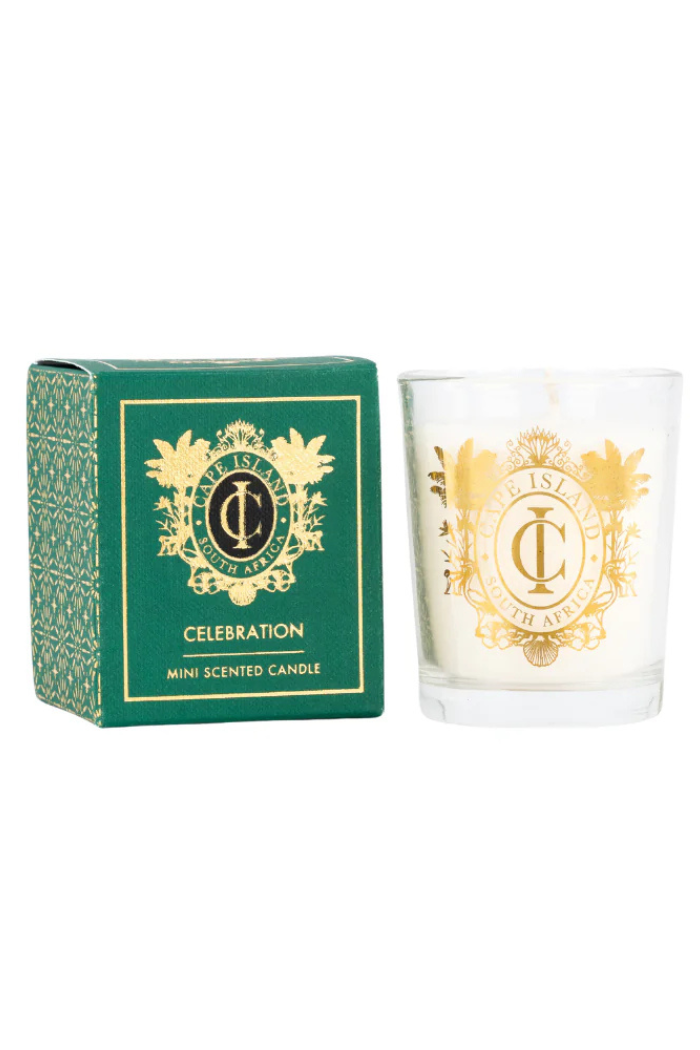 The complex aroma of the Celebration Collection artfully balances holiday spices, sweet comfort, and woody warmth, instantly evoking the perfect holiday mood. The votive candle is conveniently sized for travel, adding a special touch to any room or office space. A thoughtful holiday gift and an excellent stocking stuffer! DESCRIPTION Classy 100ml (approx. 3.38 oz) mini candle packaged in a festive gift box. Single wicked candle. Hand-poured in South Africa, using a soy wax blend and fine perfume oils imported from the Grasse region of France. The elegant glass cup can be rinsed and recycled once the candles are done. Approximate burning time: 12 hours Recommendations for use: Always place your candle on a fireproof surface or candle holder. Trim the wick to 1/4" each time before lighting the candle. Never burn a candle completely. Dispose of it when it burns to within 1/2" of its base. Keep your candles in a cool, shaded, and moisture-free area. Avoid placing them in direct sunlight and artificial light. Cleaning: softly wipe the candle’s surface using a soft cloth or nylon fabric. Remove dust and fingerprints by using either a cloth dry or slightly moistened with some water to remove dust and fingerprints. Never leave a burning candle unattended. Keep out of reach of pets and children.