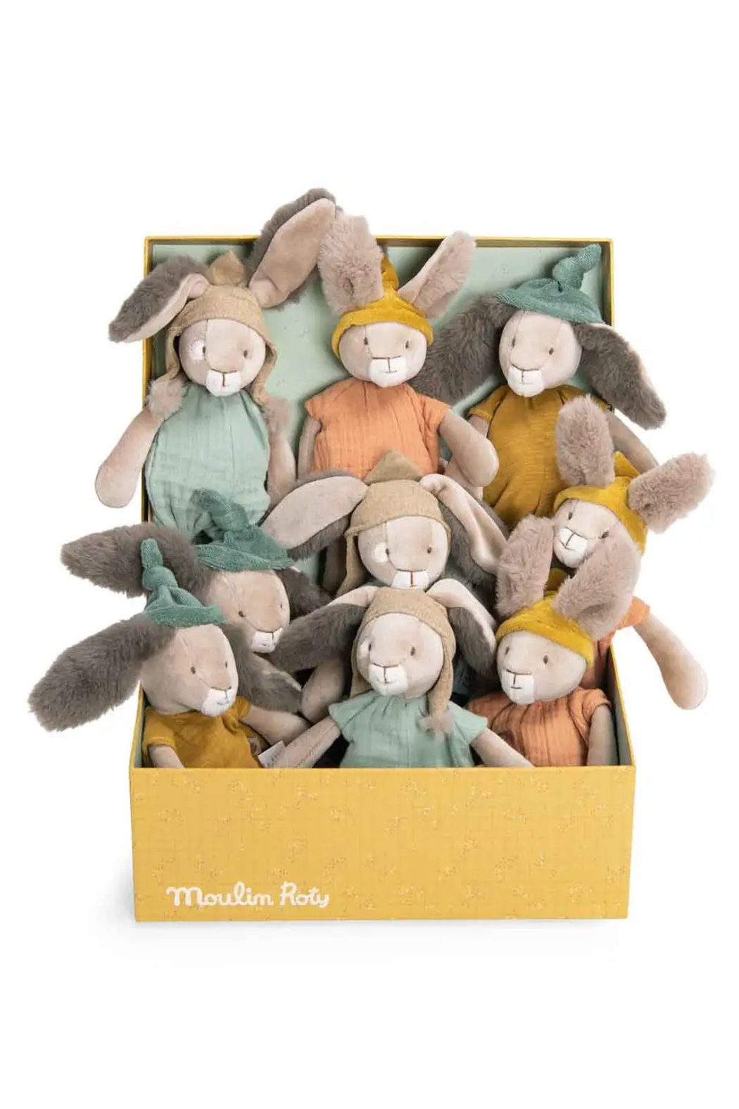 About this product Little rabbits with super soft ears and whiskered faces Dressed in their jersey or muslin romper suit, they are instantly recognizable with their hats