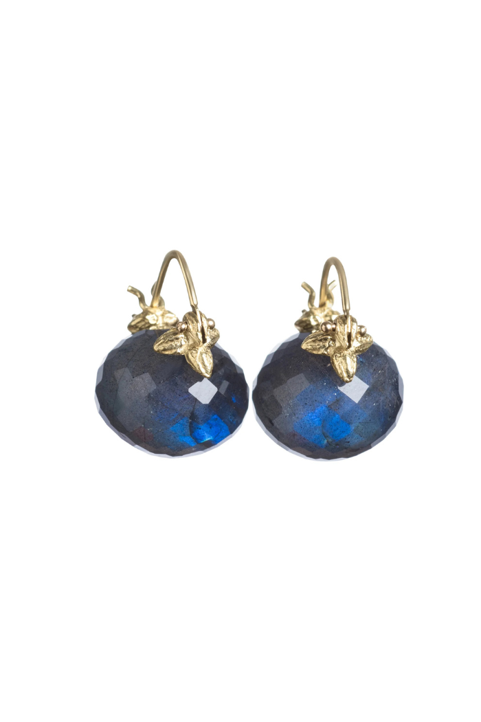 Gabrielle Sanchez Faceted Labradorite Rondelle Flyer Earring 11 x 13, 18k