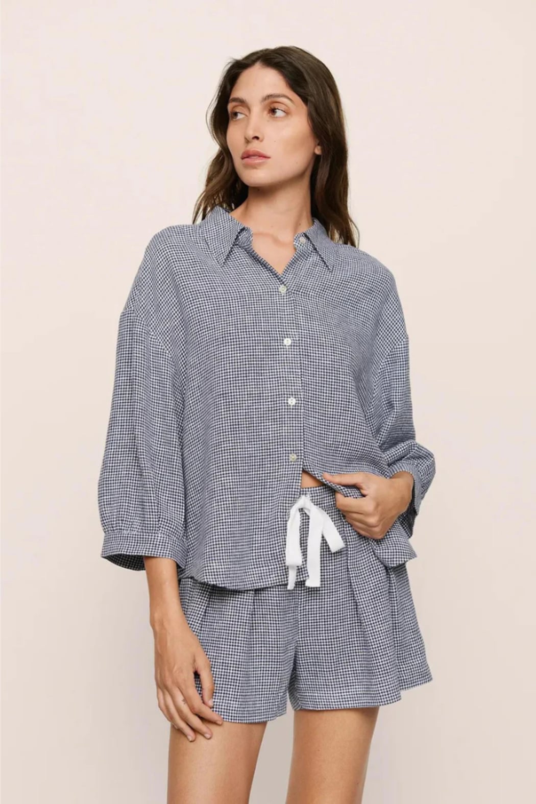 Easy breezy. Made from ECOVERO™ Viscose and linen, this fabric is verified by OEKO-TEX® Standard 100, meaning it was processed without harmful chemicals. This summer staple features a relaxed fit, a flat front waistband, elastic cinched back, adjustable twill drawcord, and front pleats. Pair with our Linen Blend Relaxed Quarter Sleeve Top or Cami for a breathable, stylish look.