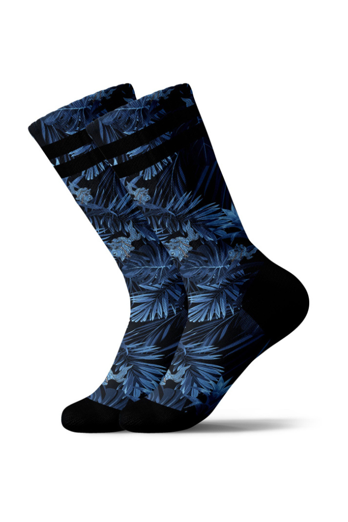 The socks are seamless and sublimation printed. A black or coloured band with the PULLIN logo sublimation printed on the back of the calf reflects the brand's DNA. Sublimation printing is a technique that uses heat-sensitive inks. These inks turn to gas when heated and are combined with a 100% polyester substrate. As the ink becomes part of the structure of the material, the images printed on the fabric will not fade or crack, even after multiple washes.