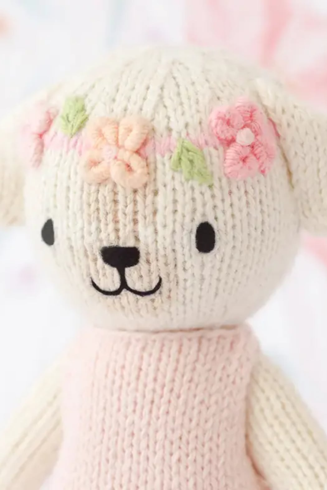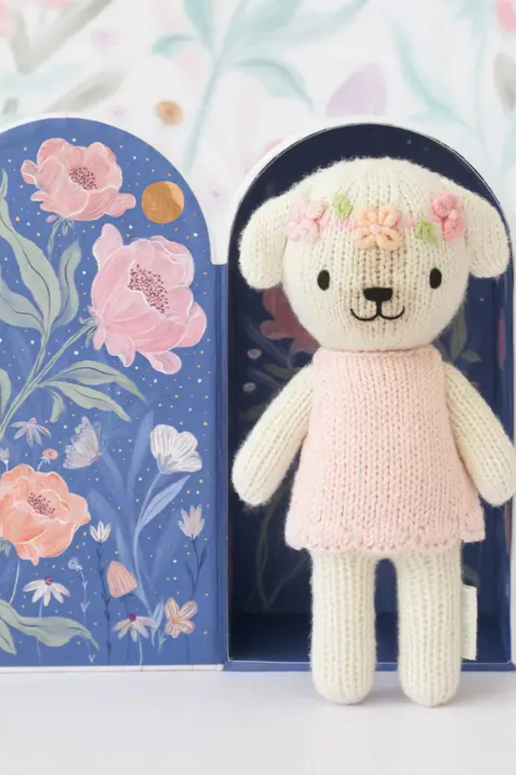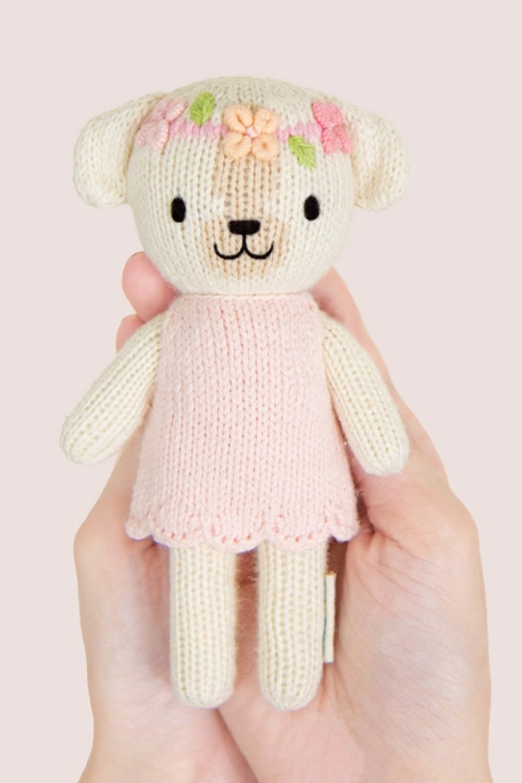 A sweet hand-knit plush in a petite size, Tiny Charlotte the Dog is finished with embroidered features and a soft pink dress for an heirloom-ready look. This cuddly toy arrives in a decorative box that makes it gift-ready for baby showers and birthdays. CUDDLE + KIND crafted the doll from soft knit fabric with child-safe embroidery details so it’s suitable for the youngest snuggles.