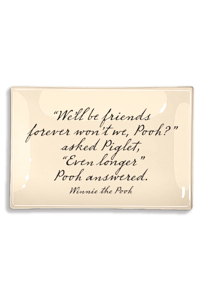 In the French tradition of decoupage, these bent-glass trays are handcrafted in our New York Studio. They feature vintage typeset on a natural cream background, and each is individually signed by Ben. Both practical and charming, Ben's signature decoupage is all food safe, wipe clean and the back side is felted.