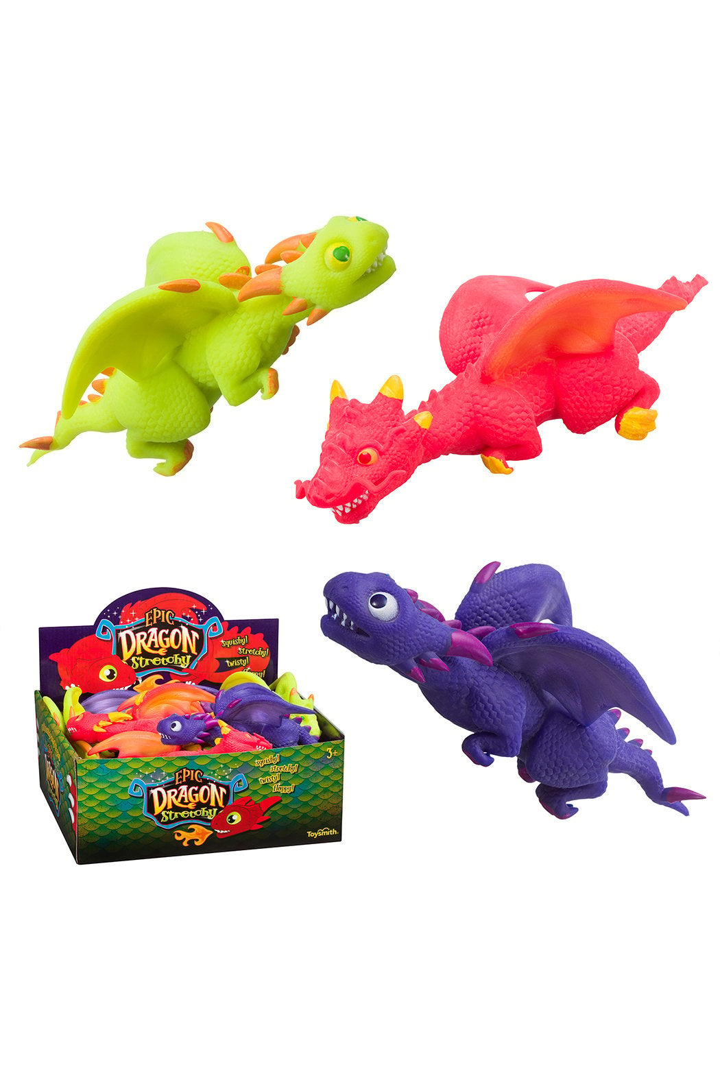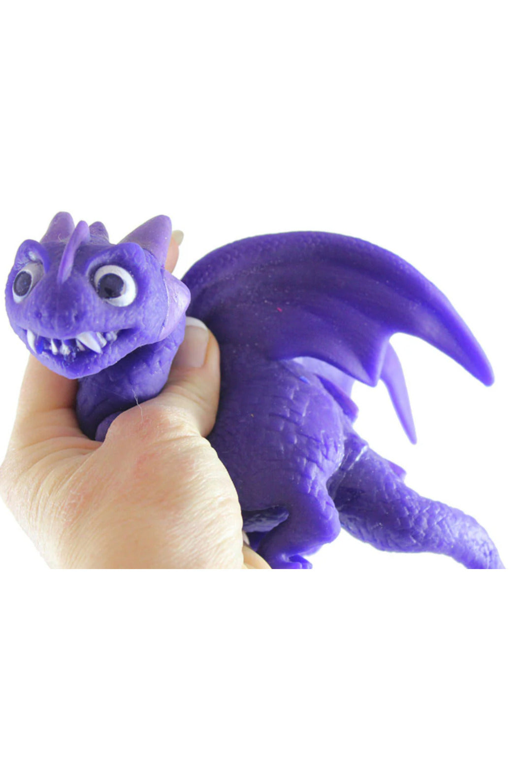 These awesome squishy dragons are super stretchy and filled with crunchy beads that are safely encased in extra thick tacky rubber which makes them a durable sensory toy. 3 Colors to choose from: Red, Green and Purple. Each color features a unique dragon. A perfect fidget toy. Measures 8" long. Made of non-toxic materials. Ages 3 and up.