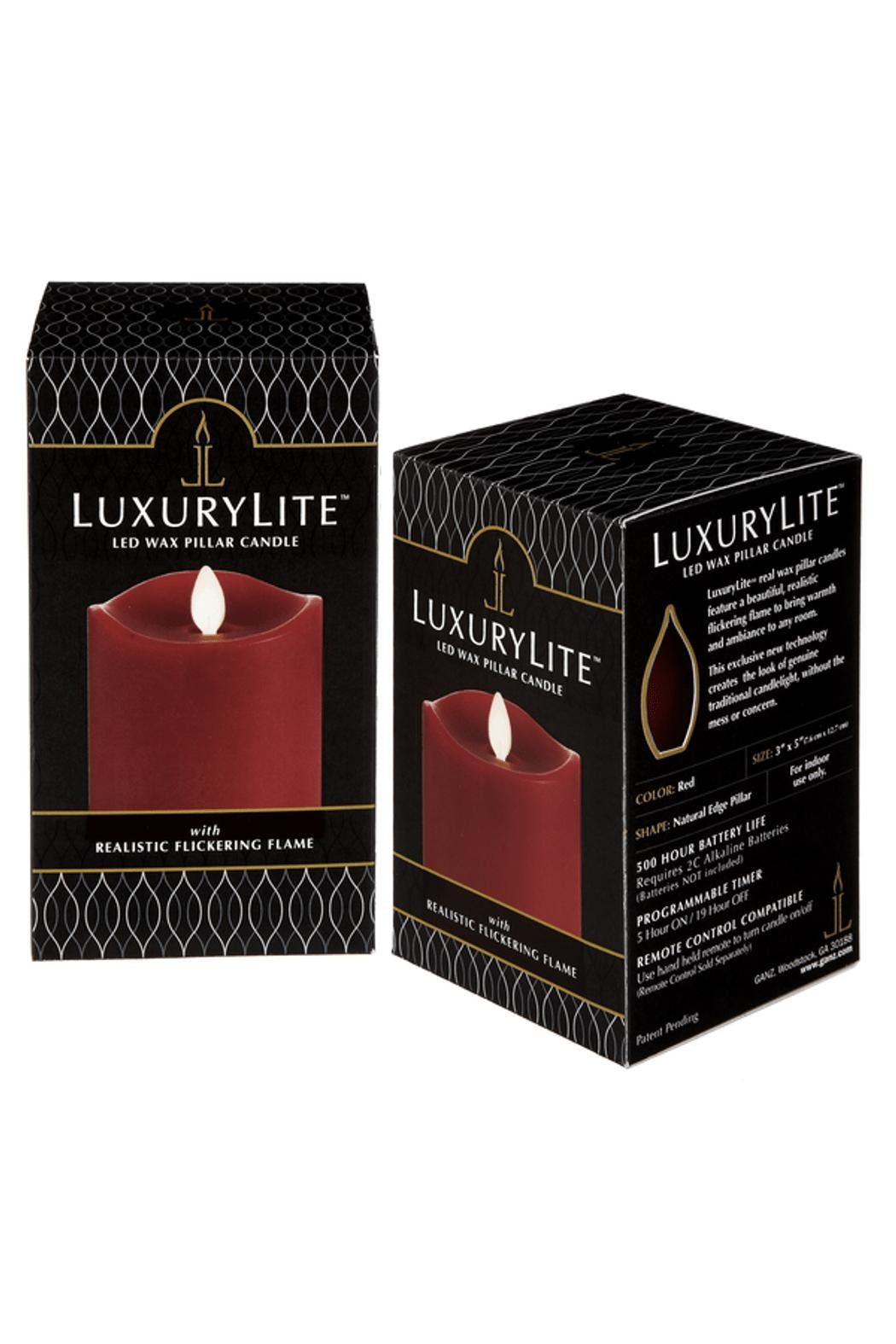 Flameless and burn free wax candle. Electric LED light creates a look of genuine flickering candlelight without the concerns of fire or dripping wax. 3"x6" in a cheerful "Red" color. Equipped with On/Off function as well as a 5 hour timer function (5 hours on and 19 hours off). Requires 2 C Alkaline Batteries, not included. 500 hour battery life!