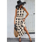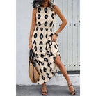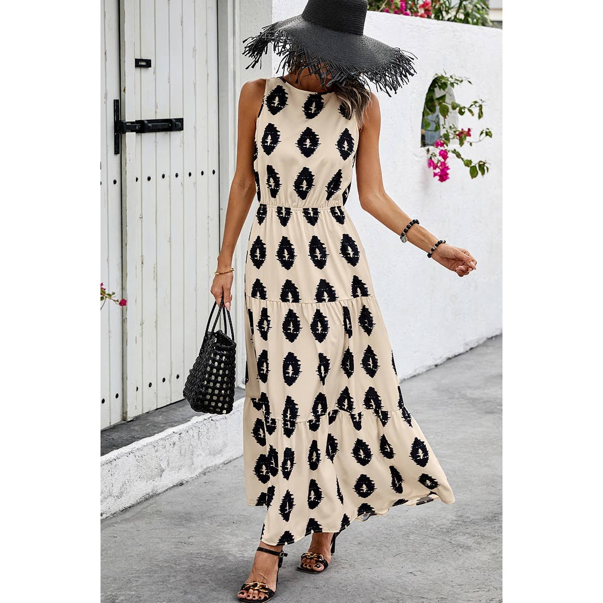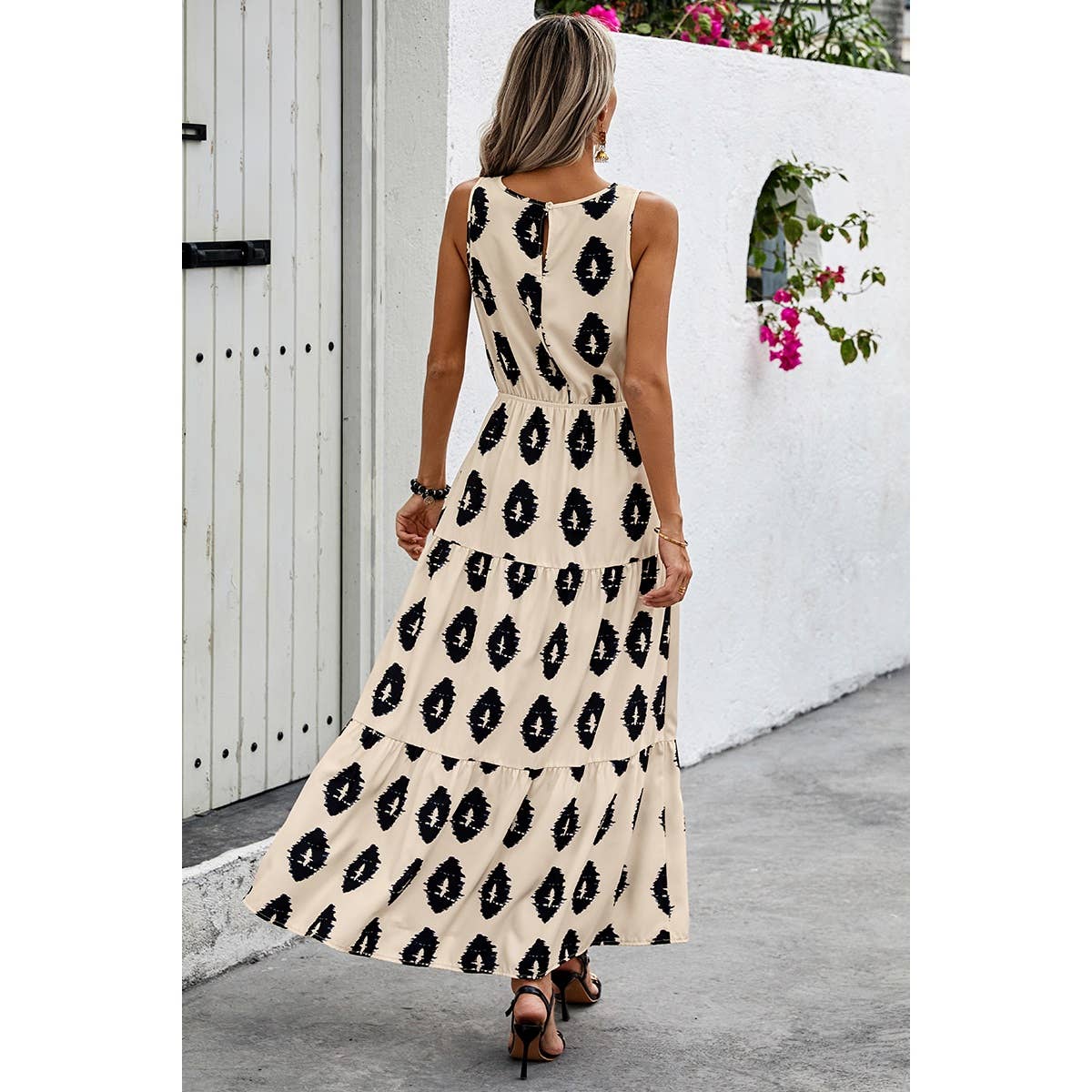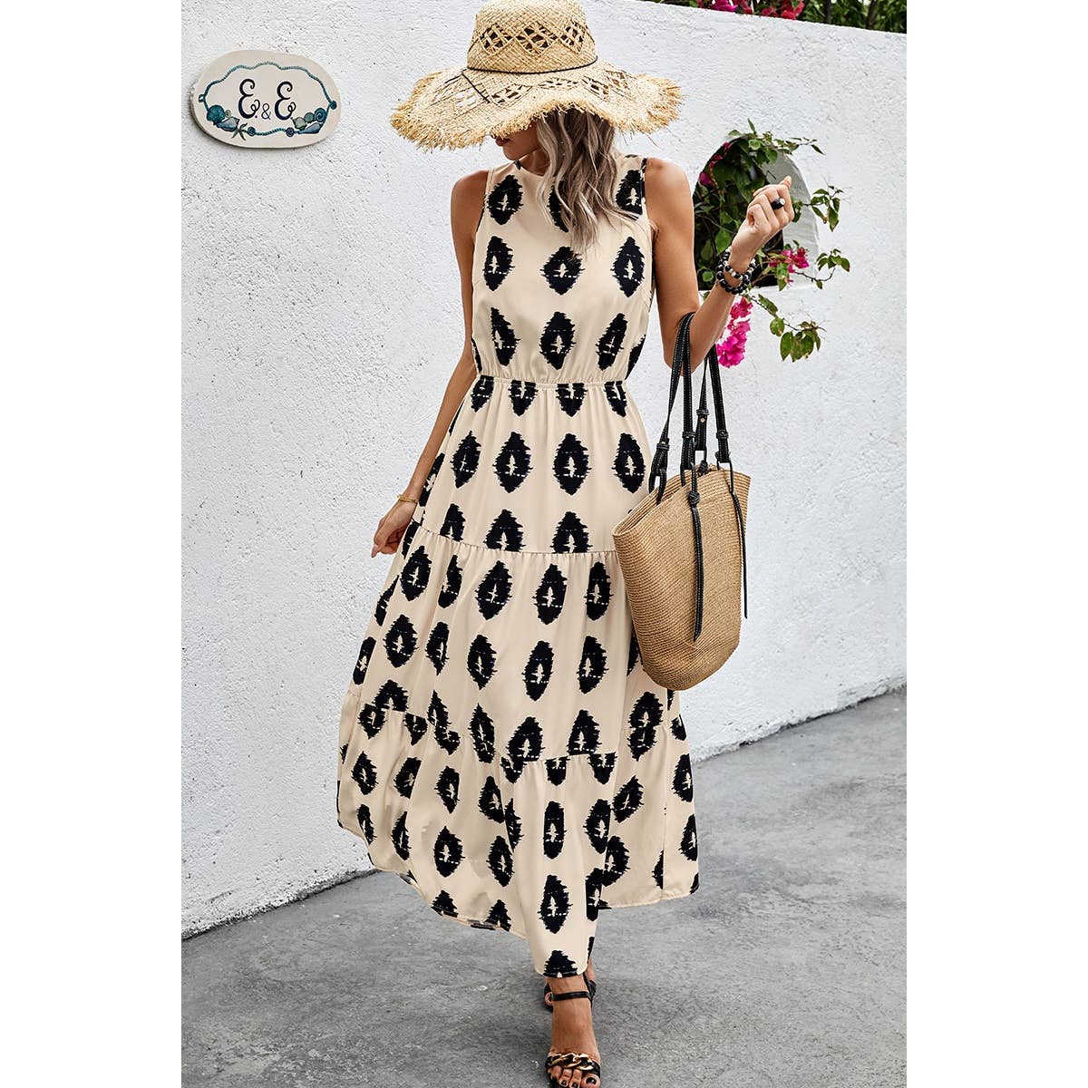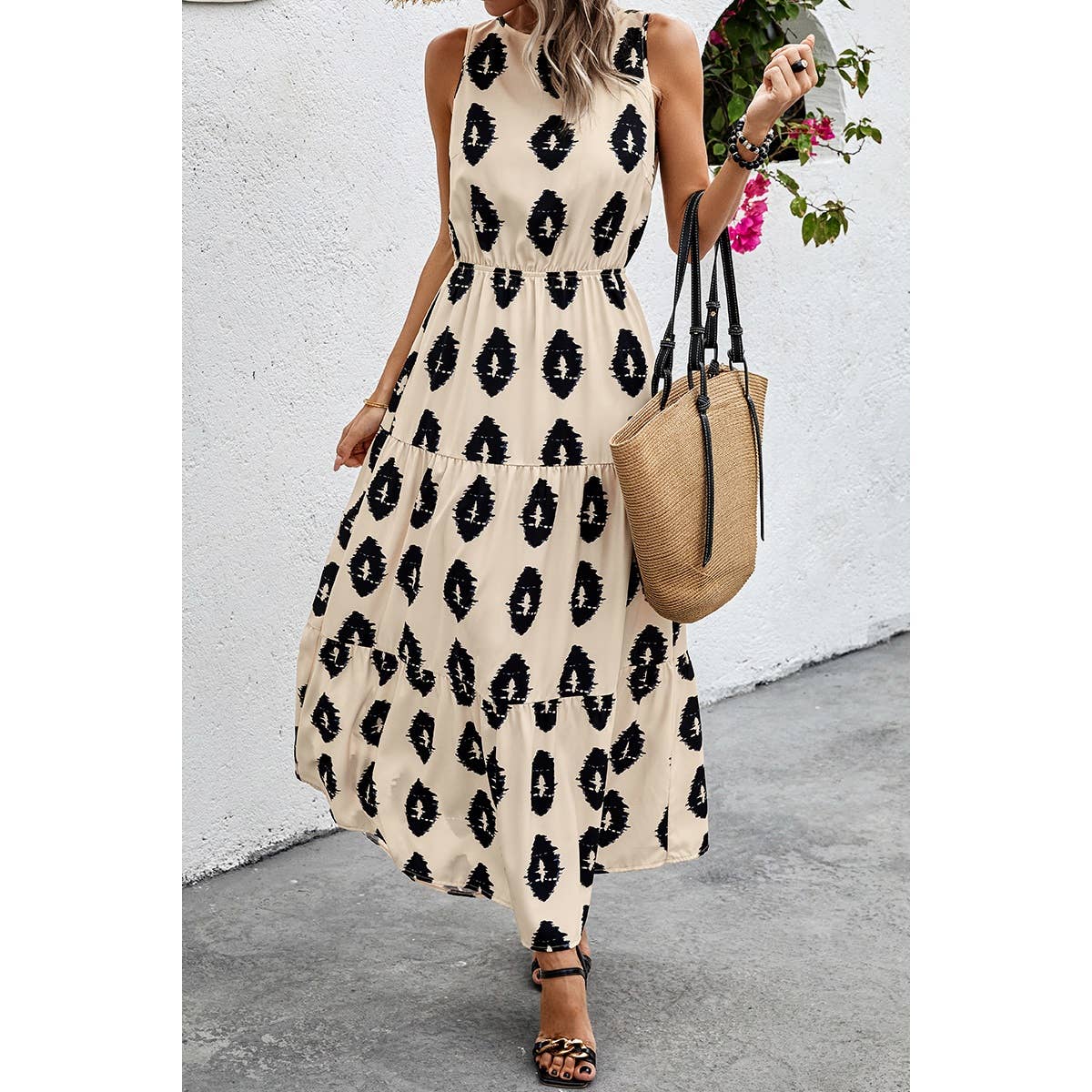 Elevate your wardrobe with our Sleeveless Printed Elastic Waist Ruffle Full Dress from Small Town Gifts & Homestead Co. This versatile piece is perfect for casual outings, vacations, or any occasion where you want to feel stylish and comfortable.