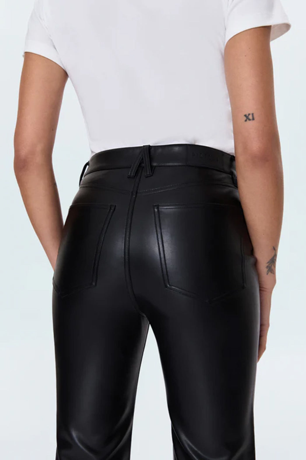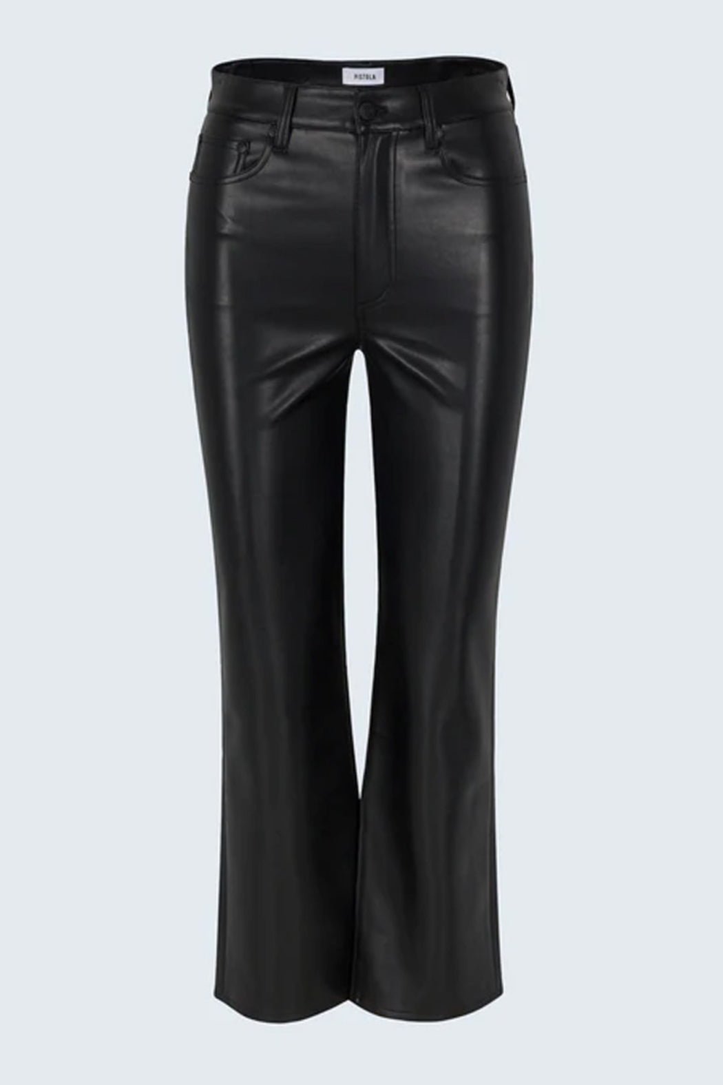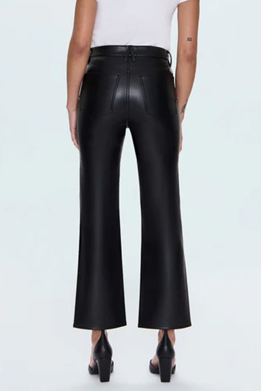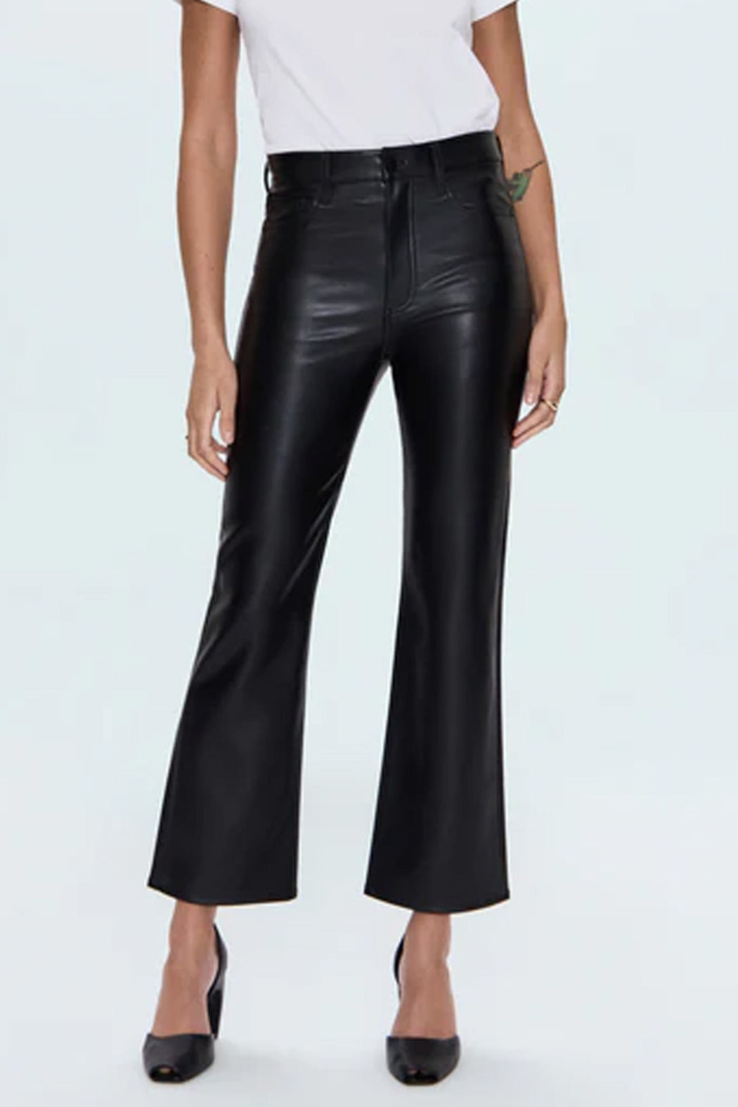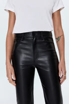 A modern bootcut with vintage inspiration, Ally offers a high rise, slightly wider leg, and cropped 28" inseam for a relaxed fit. Crafted from our signature alternative leather in Onyx, a rich black coated finish that elevates the timeless silhouette with sleek sophistication.