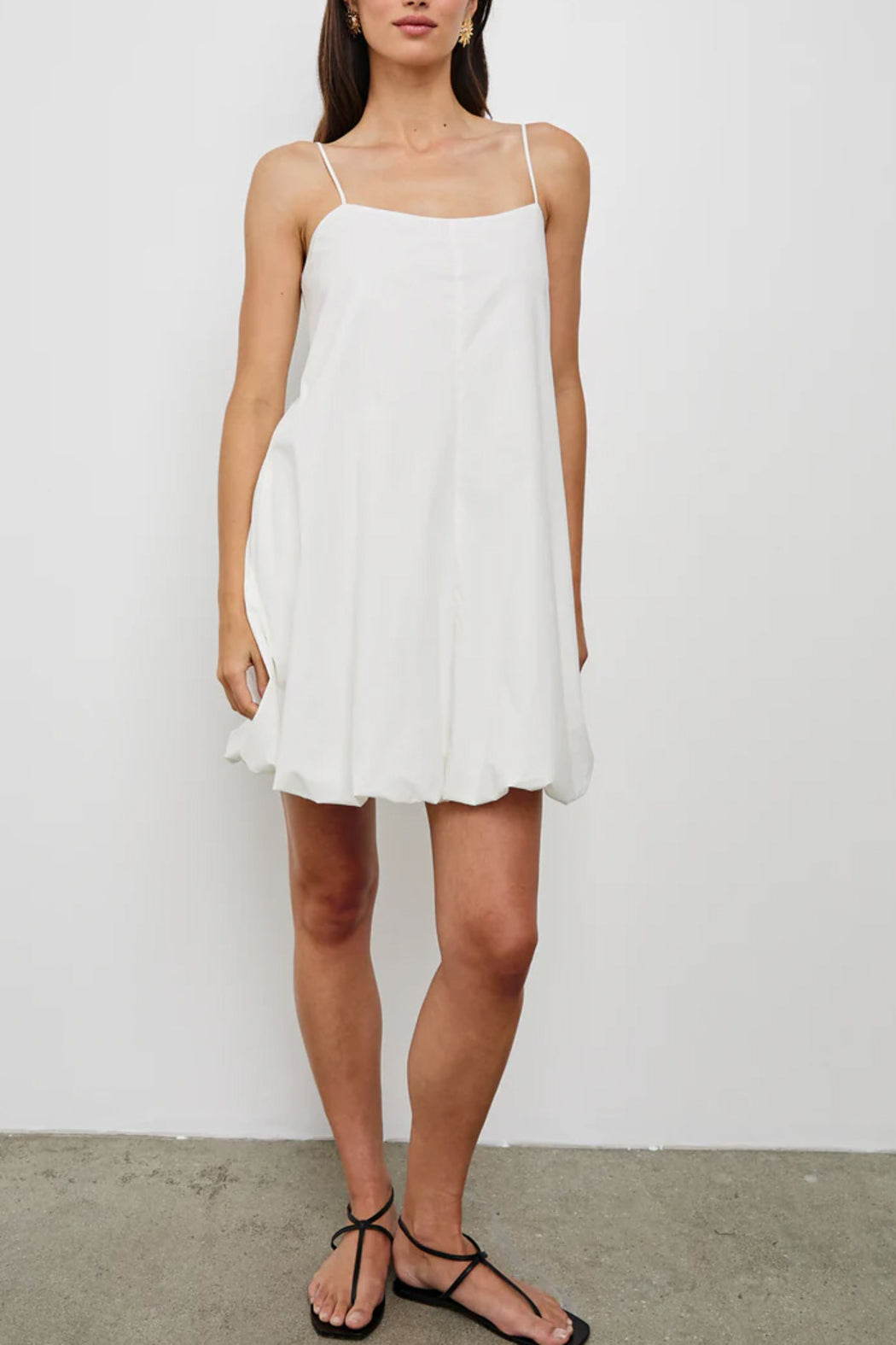 The Blanca is a bubble-hemmed mini dress with big personality. Crafted in crisp cotton poplin—fully lined—with subtle stretch and adjustable straps.