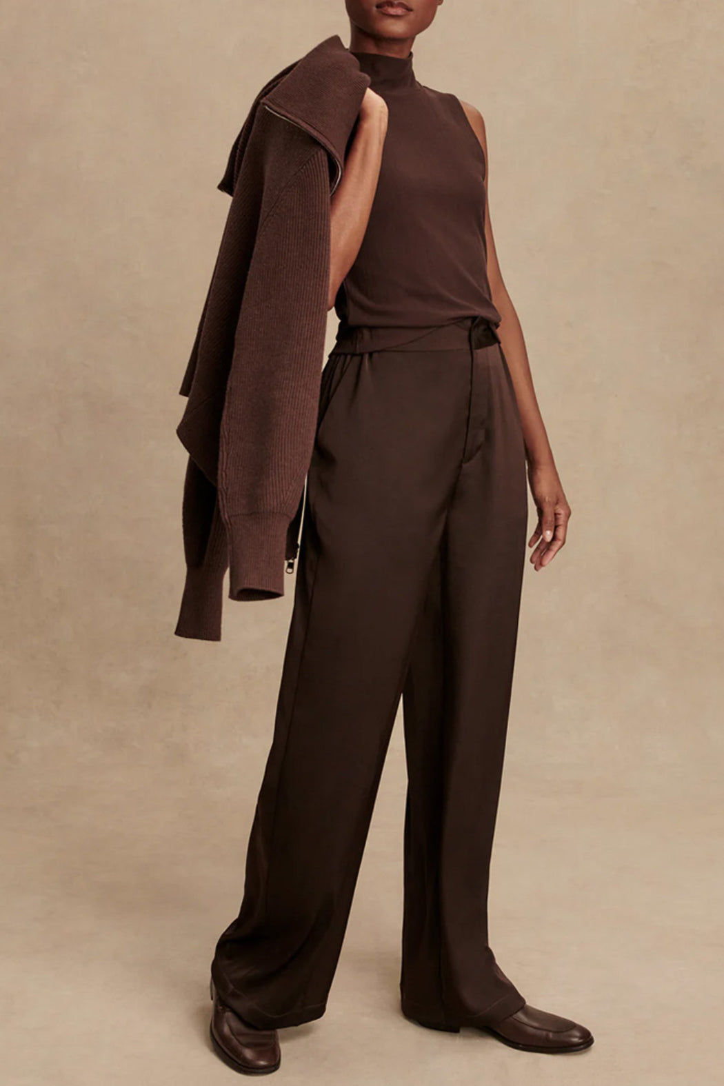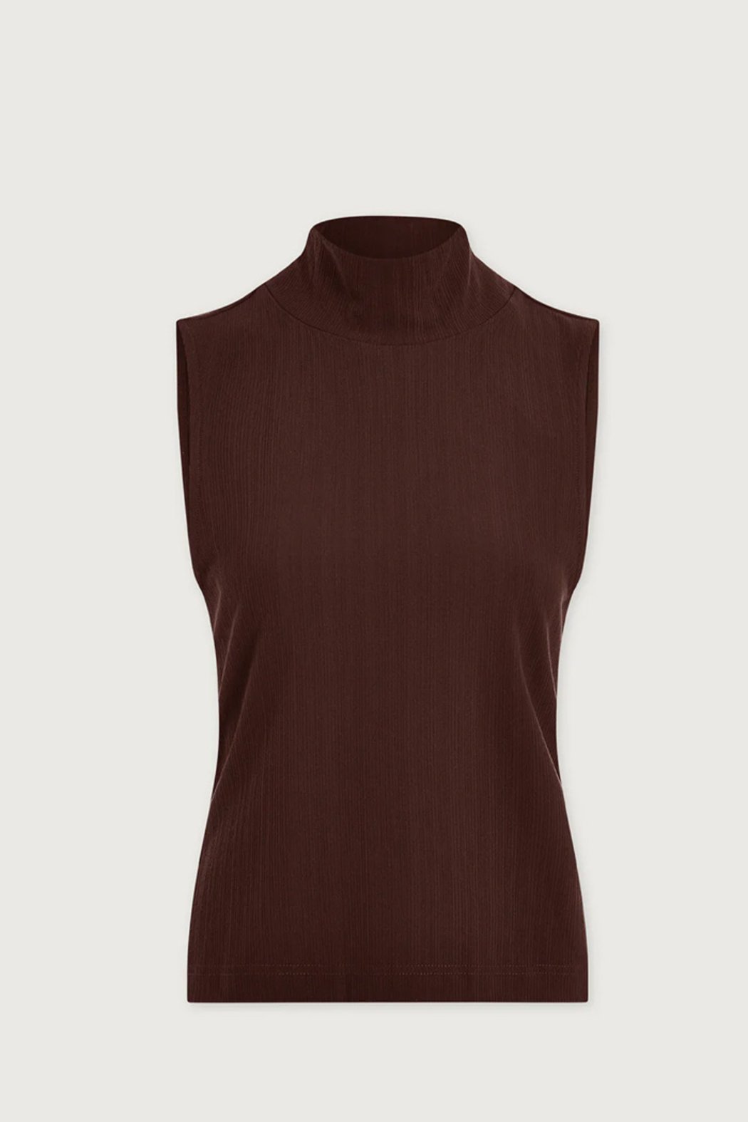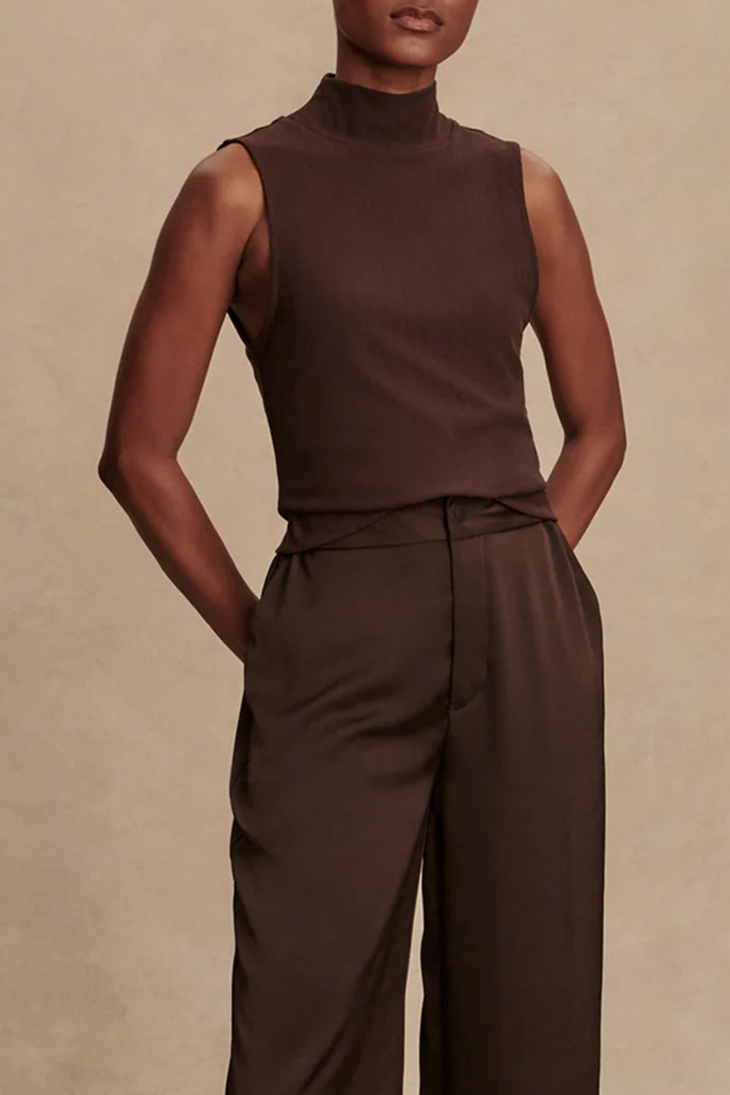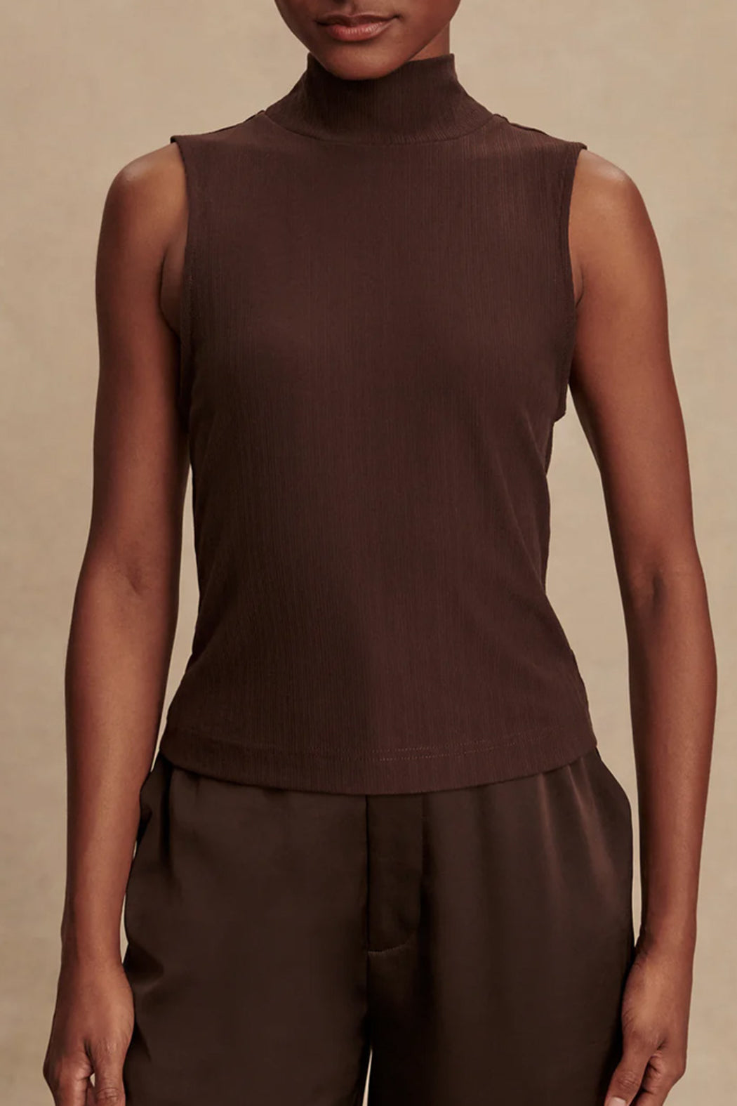 Made from a lightweight viscose-blend rib, this tank offers a luxurious hand feel and effortless stretch. With its contemporary mock neck and straight hemline, it's a versatile essential.