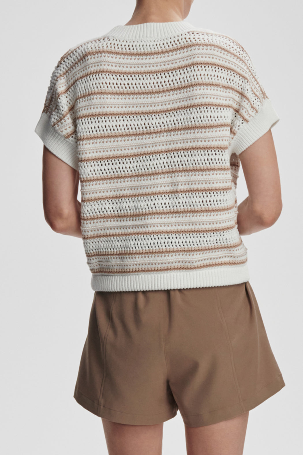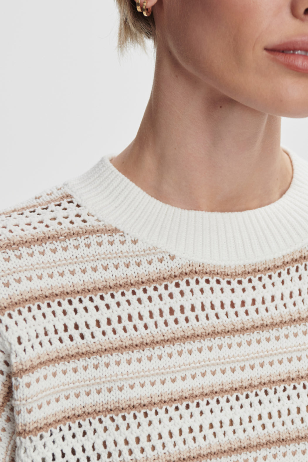 The Ciara is made from a cotton-blend yarn, like our Randall tank. The mix of pointelle and stripe stitching give intricacy to this wardrobe staple. The drop shoulder design and grown on sleeves add a contemporary twist.
