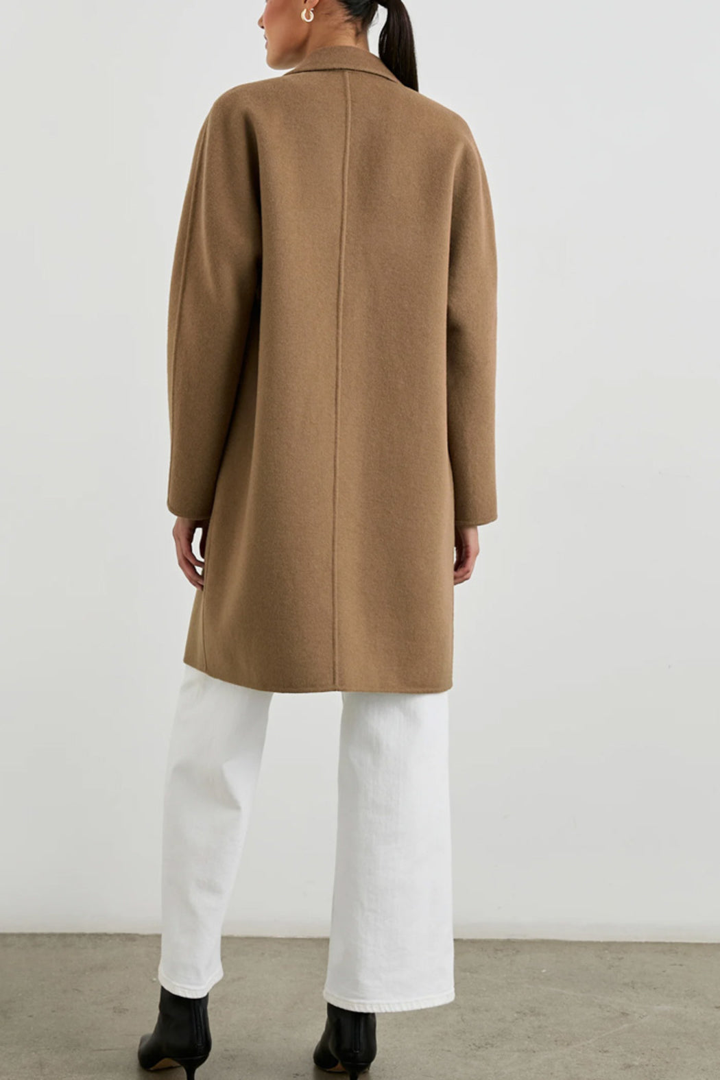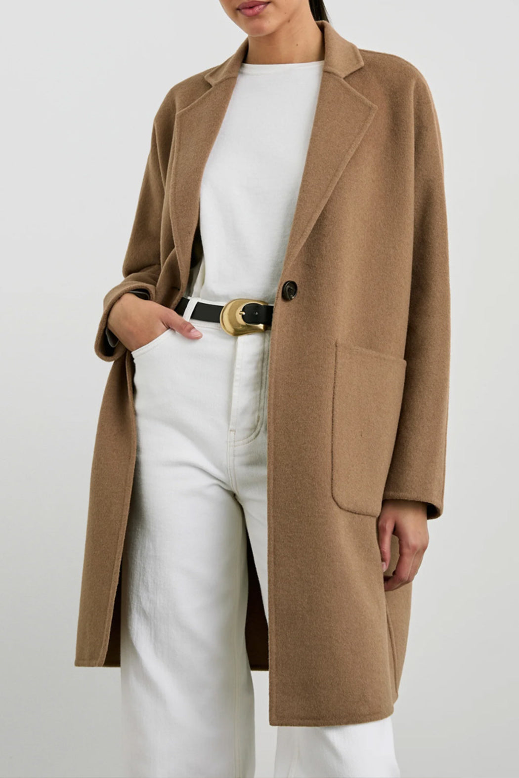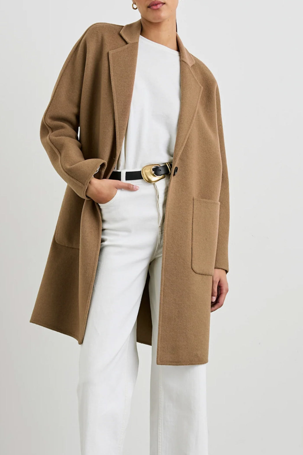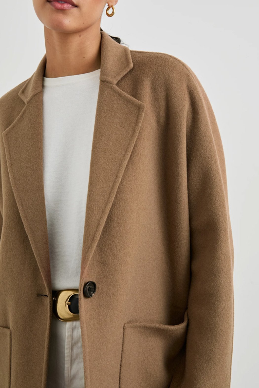 This luxe coat is the perfect third piece sure to elevate any outfit. Made from a heavyweight wool blend, this unlined coat features a slightly oversized fit, notched lapels, dolman sleeves, oversized patch pockets at hip, and a single-button front closure with horn button.