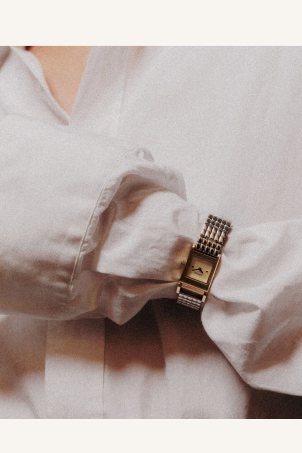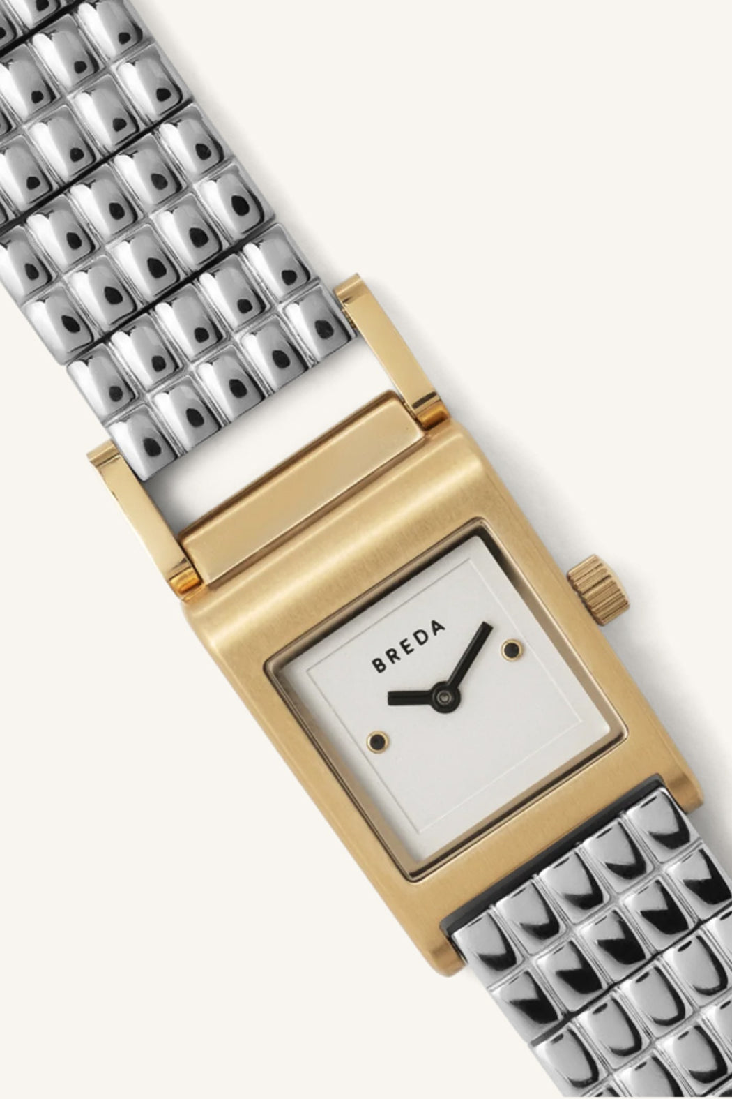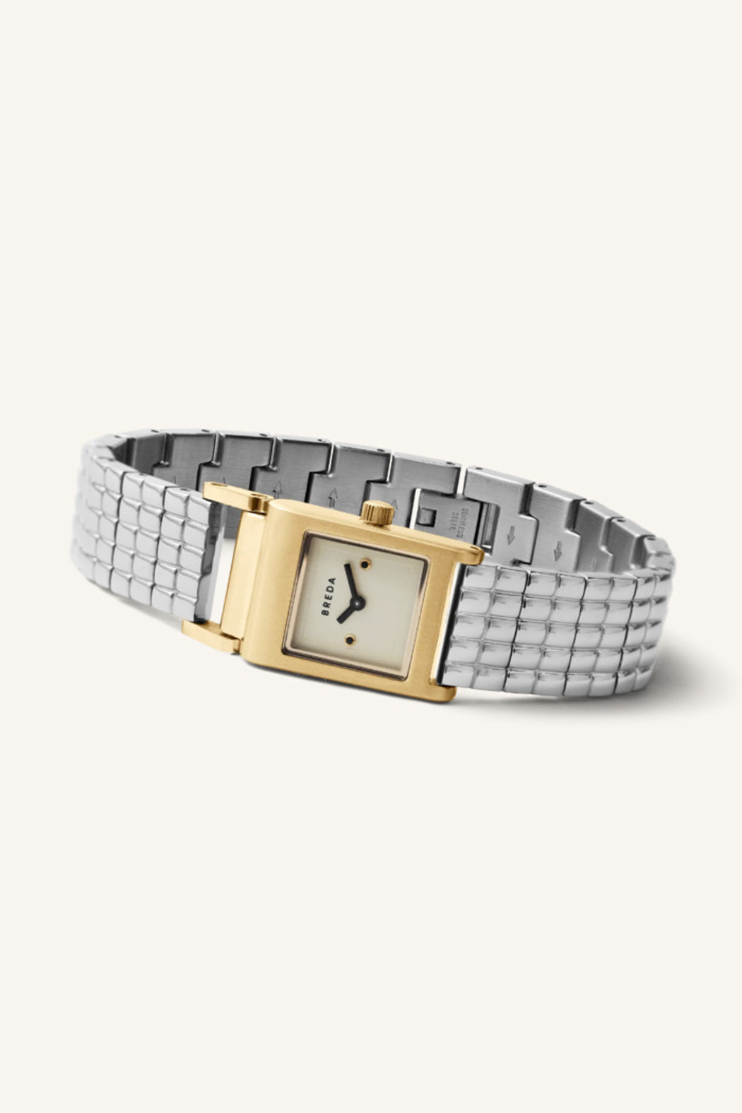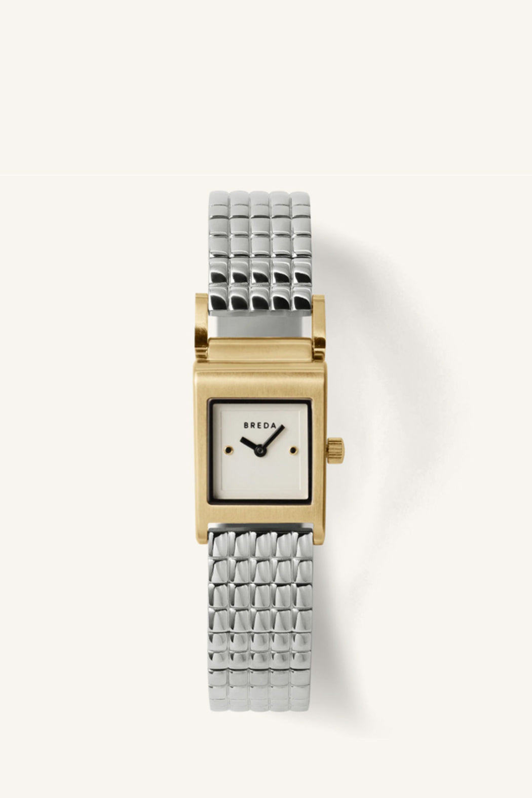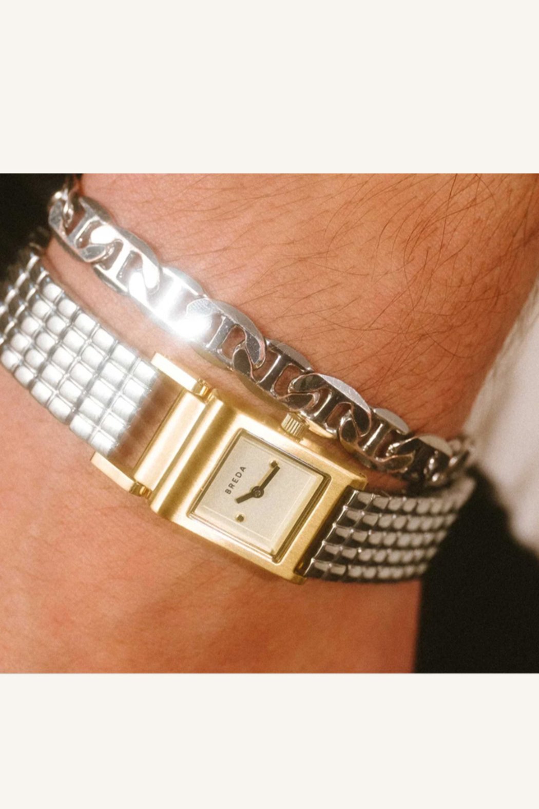 Embracing moments of resiliency, the Revel exists as a reminder of power and personality. Carrying a petite 18mm squared case and 14mm bracelet this timepiece presents a delicate buckle feature and fastens with a jewelry clasp. - 18K Gold-Plated Case - 18mm Case - Jewelry Clasp Closure - Stainless Steel Band - 14mm Band - 3ATM (30m Splash-Resistant. Okay for rain, hand washing, other occasional contact with water.) - Japanese-Made Seiko Quartz Movement BREDA warranty: We cover any manufacturer defects of the watch movement. If your watch stops working or has any issues within the warranty period, we will service it at no charge.