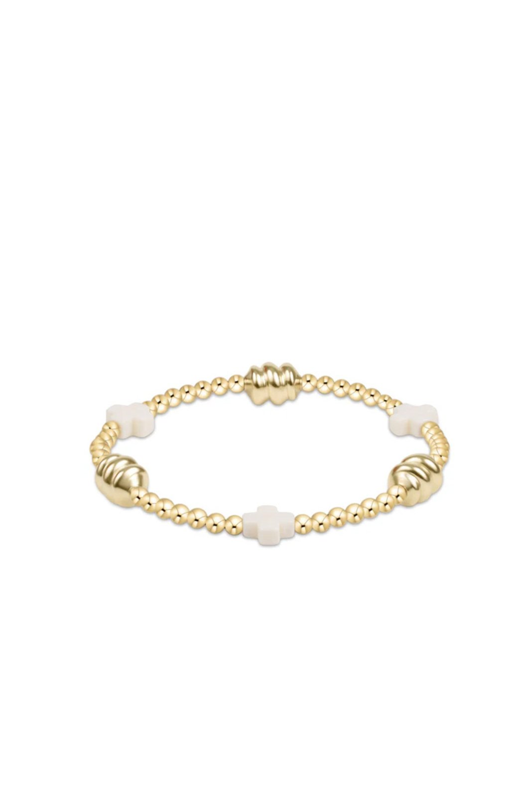 -Made with 3mm, 14kt gold-filled beads, our 14kt gold-filled admire bead, and off-white signature cross.