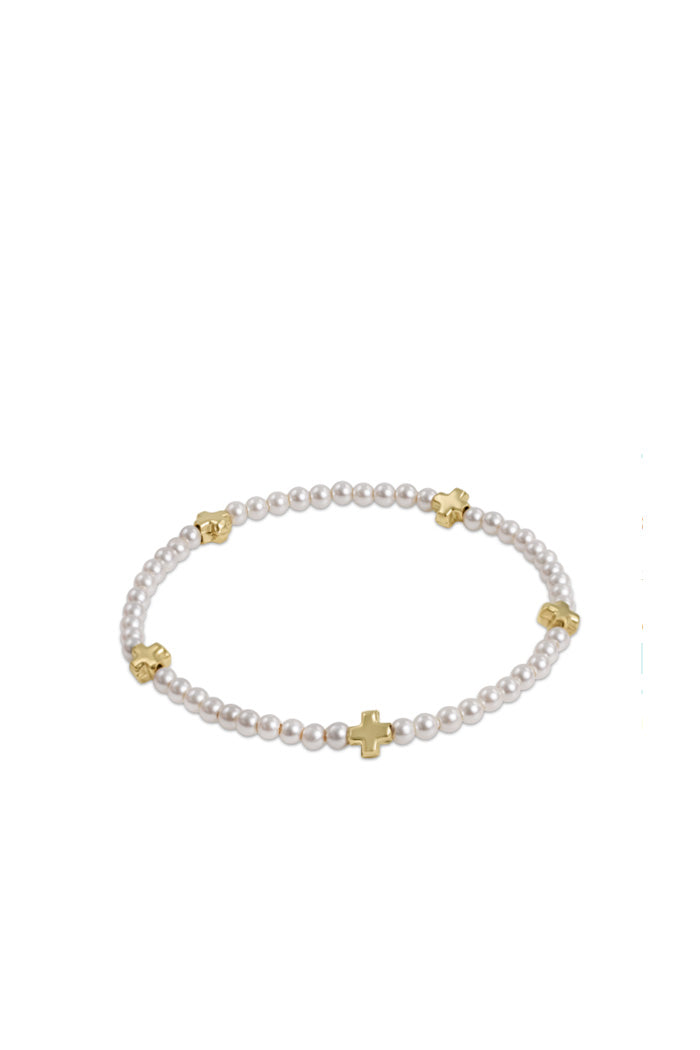 Small Signature Cross Pearl 3MM Bead Bracelet