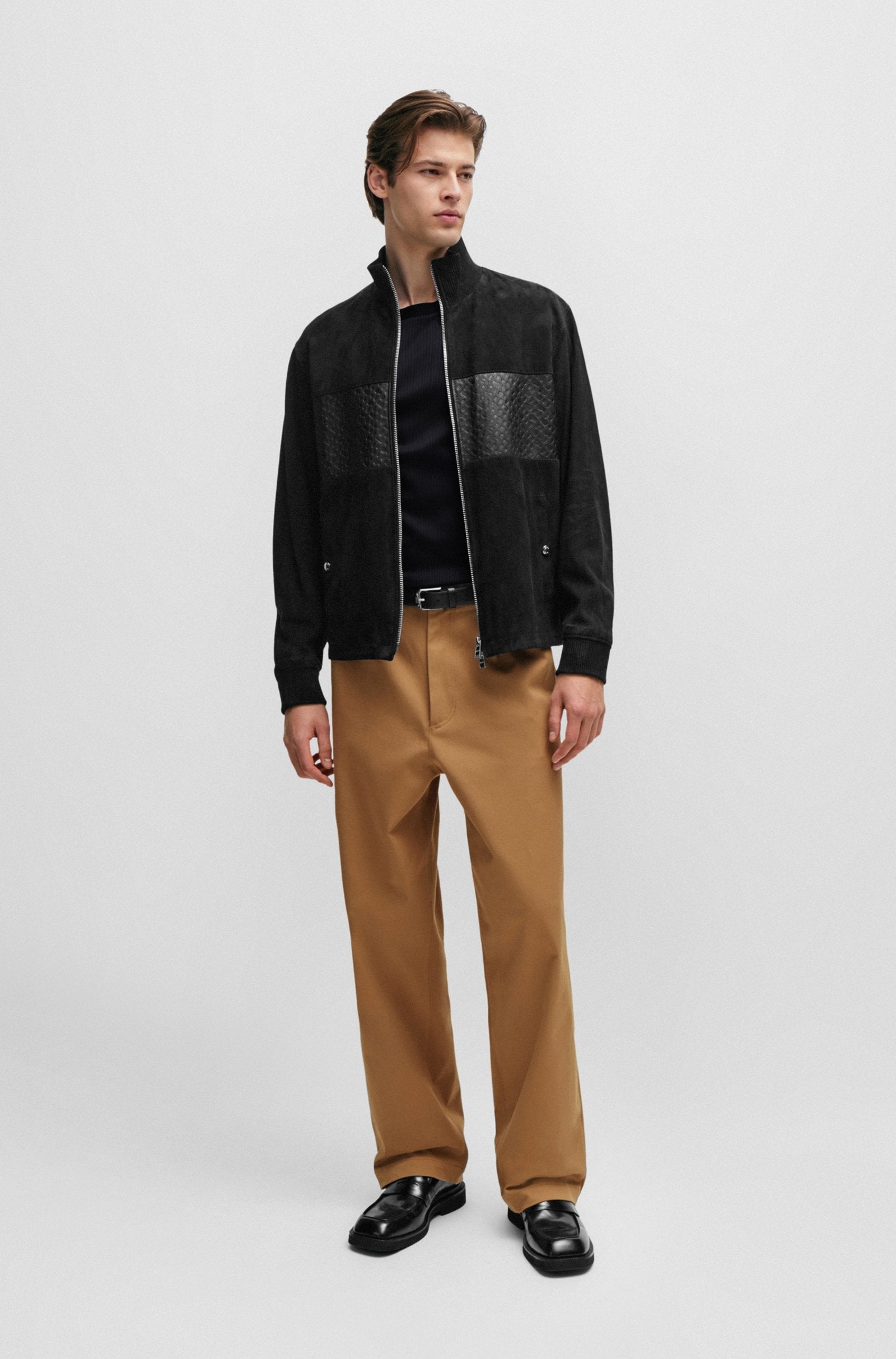 , this regular fit tee boasts a two-tone structure and a crew neckline. Short sleeves and a standard length add versatility to this refined piece from BOSS Menswear.