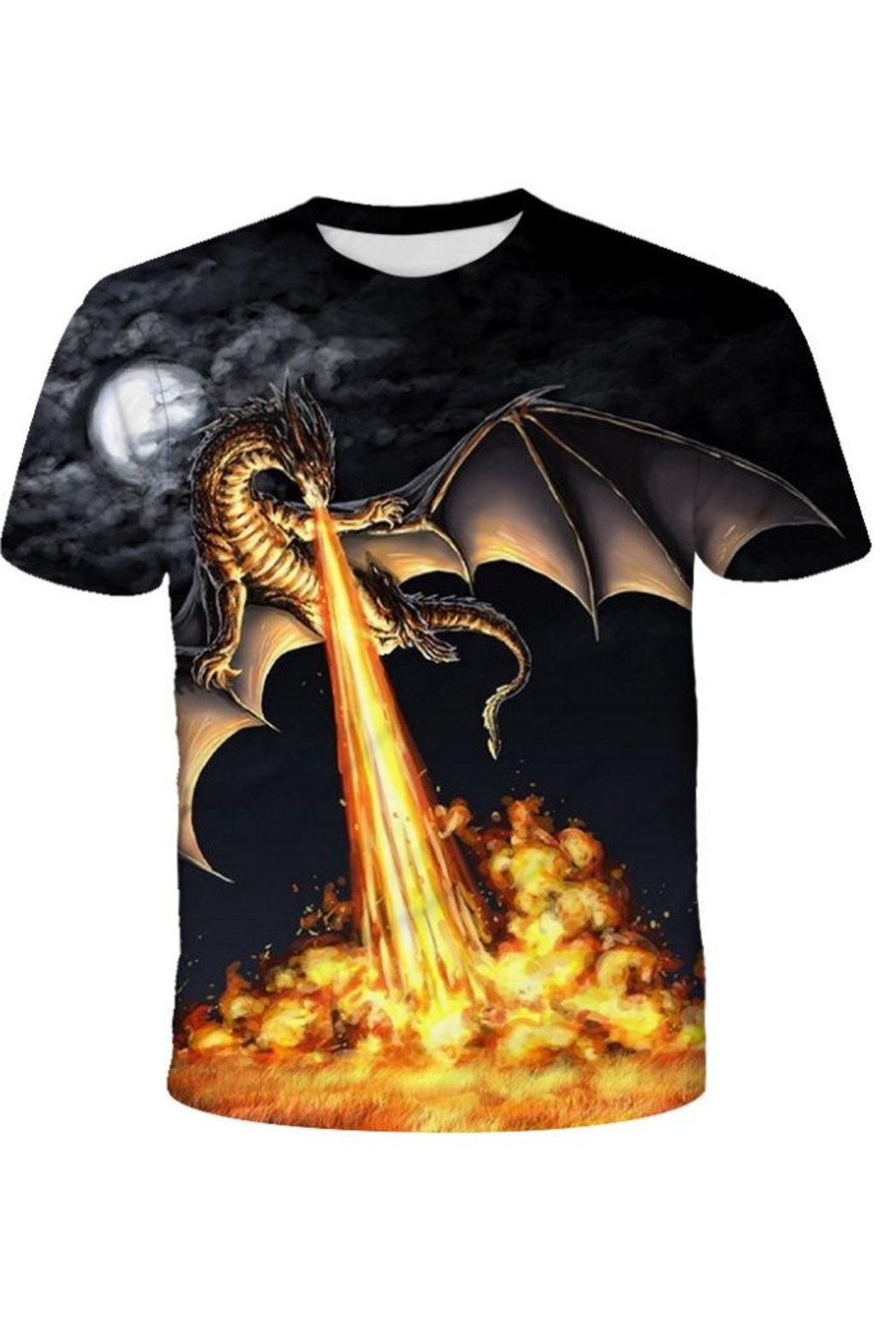 Men's Graphic Print T-Shirt Fire Breathing Dragon Crew Neck - Short Sleeve - Fashion Tee