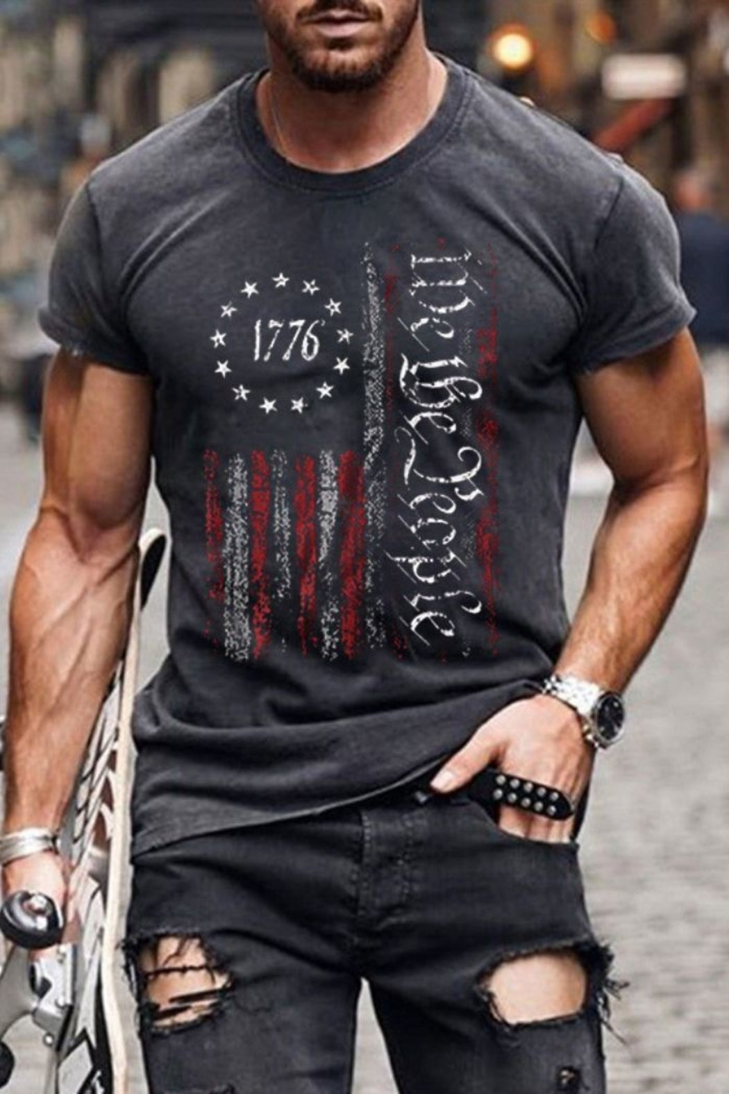Men's Graphic Print T-Shirt We The People 1776 American Patriotic Shirt Crew Neck - Short Sleeve - Fashion Tee