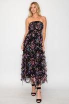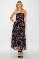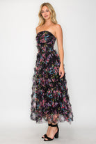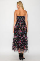 Like a secret garden discovered at midnight, the Whisper Bloom Tube Maxi Dress is a breathtaking vision of dark romance and ethereal beauty. It's a masterpiece designed for the most enchanting evenings of the year, from autumnal weddings to glamorous holiday galas.