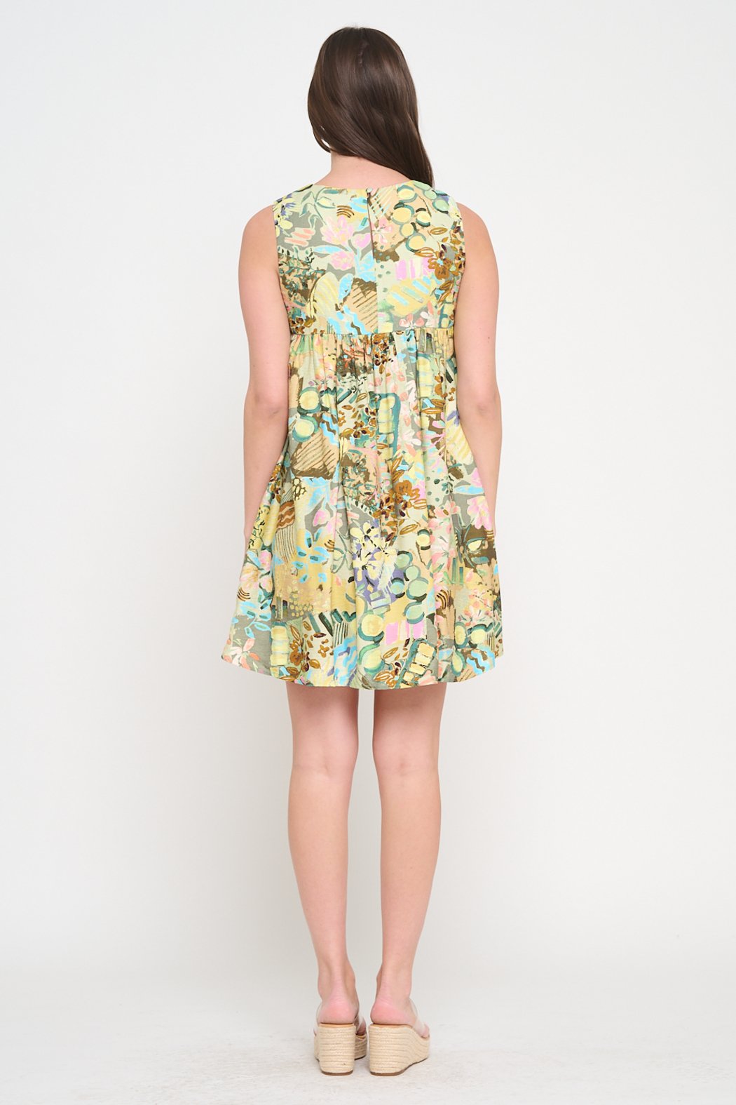 Breezy and vibrant, the Whispering Meadow Pleat Dress captures the joy of sunlit days. Crafted from lightweight woven fabric, this sleeveless dress features an artistic, multicolor botanical print that feels fresh and whimsical. The round neckline and soft pleating create an airy, relaxed silhouette that moves beautifully with every step. Falling to a flattering short length, it’s perfect for daytime outings, resort vacations, or casual garden parties. Pair it with espadrille wedges for an elevated look or flat sandals for effortless, all-day comfort. Easy to wear and endlessly versatile, this dress will be your go-to for warm-weather style.