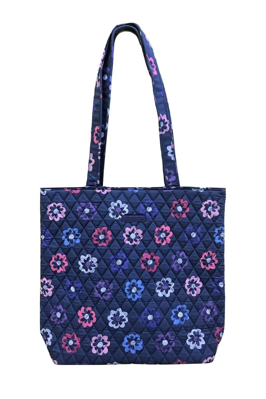 This is the Vera Bradley Tote in the Ellie Flowers pattern. Sometimes all you need is an all-day tote that won't let you down. This is it! It has three interior slip pockets, and removable baseboard for easy laundering. The diamond quilted cotton is light weight, long wearing, and packable. Find other accessories in Ellie Flowers on the "Mimi's Gift Gallery" boutique page. Dimensions: 11¾" Wide x 13½" High x 4" Deep with 12½" strap drop.