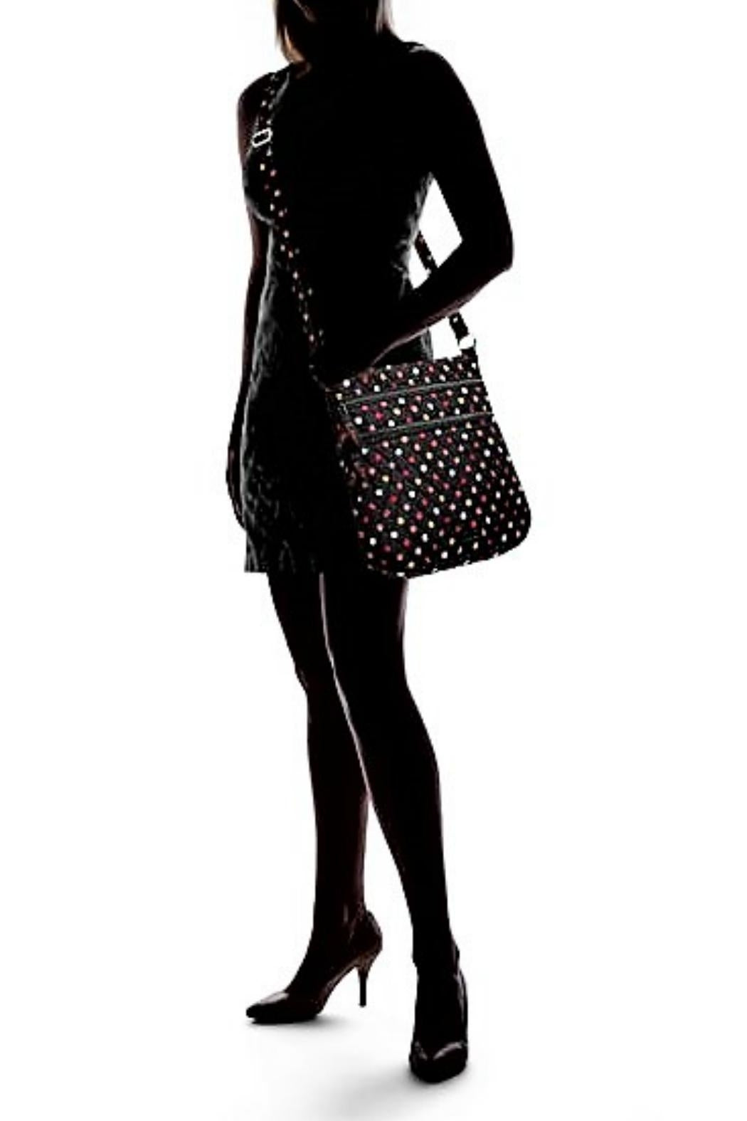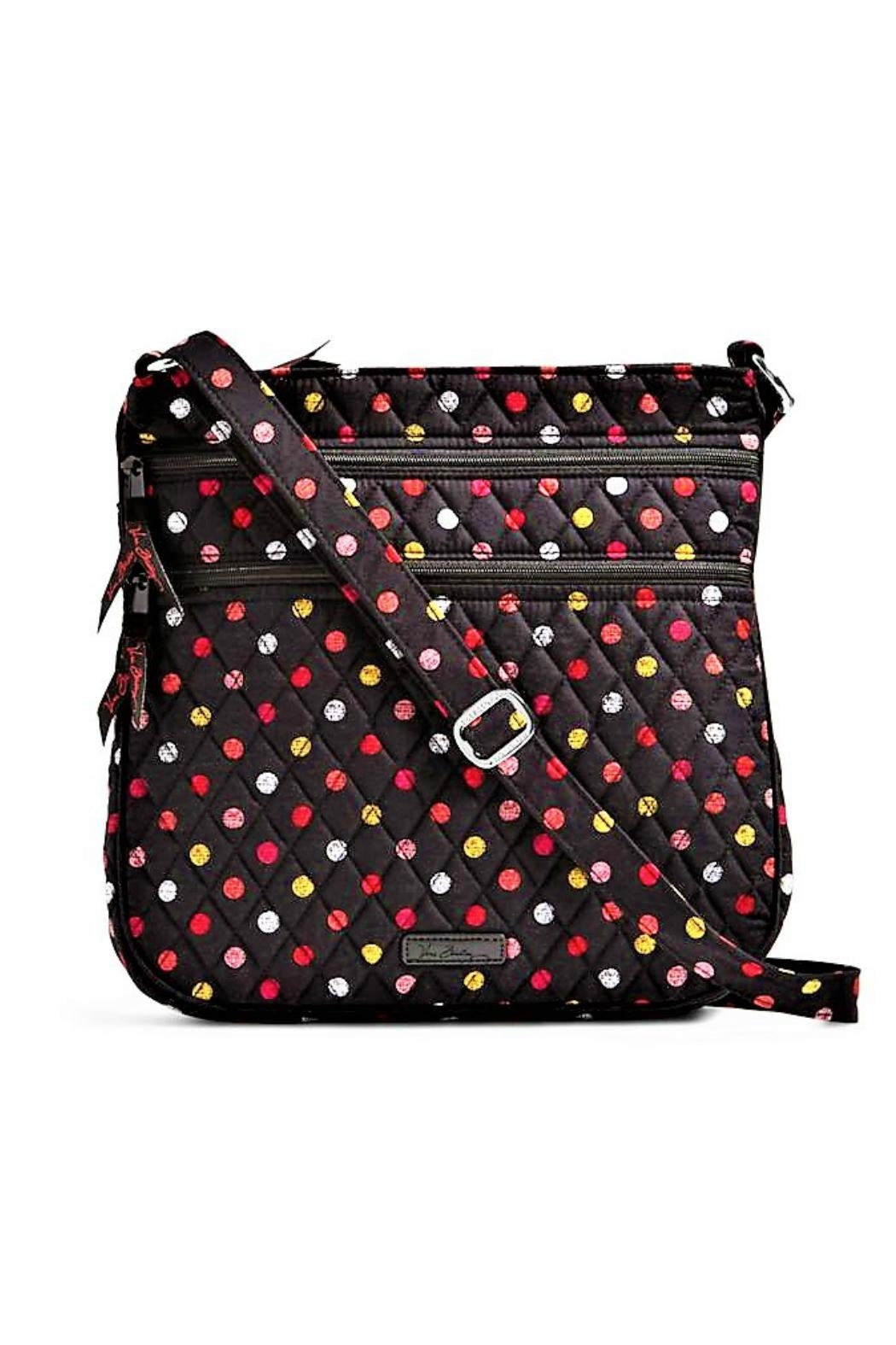 The Vera Bradley Triple Zip Hipster in the Havana Dots pattern is the ultimate in hands-free organization. This clever crossbody features three separate zippered compartments. How you use those compartments is up to you. We have faith that you will make us proud with your organizational skills! It has an Interior zip pocket, two front zippered compartments, one with two slip pockets inside and a multifunctional slip pocket on the back that's great for your phone or keys. Find other accessories in the Havana Dots pattern on the "Mimi's Gift Gallery" boutique page. The dimensions are 11 ¾" wide x 11 ½" high x 2" deep. The adjustable shoulder strap is 56" long