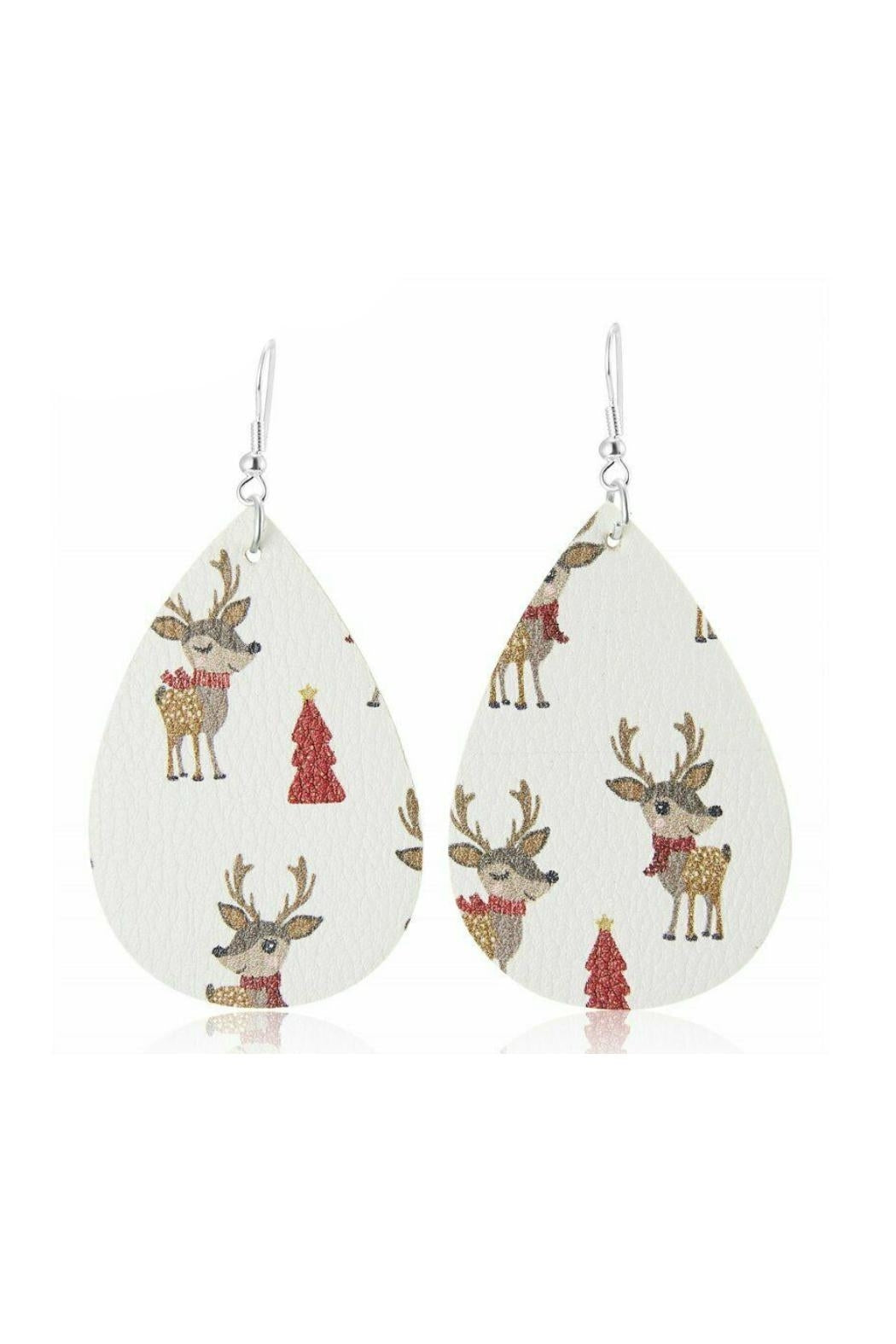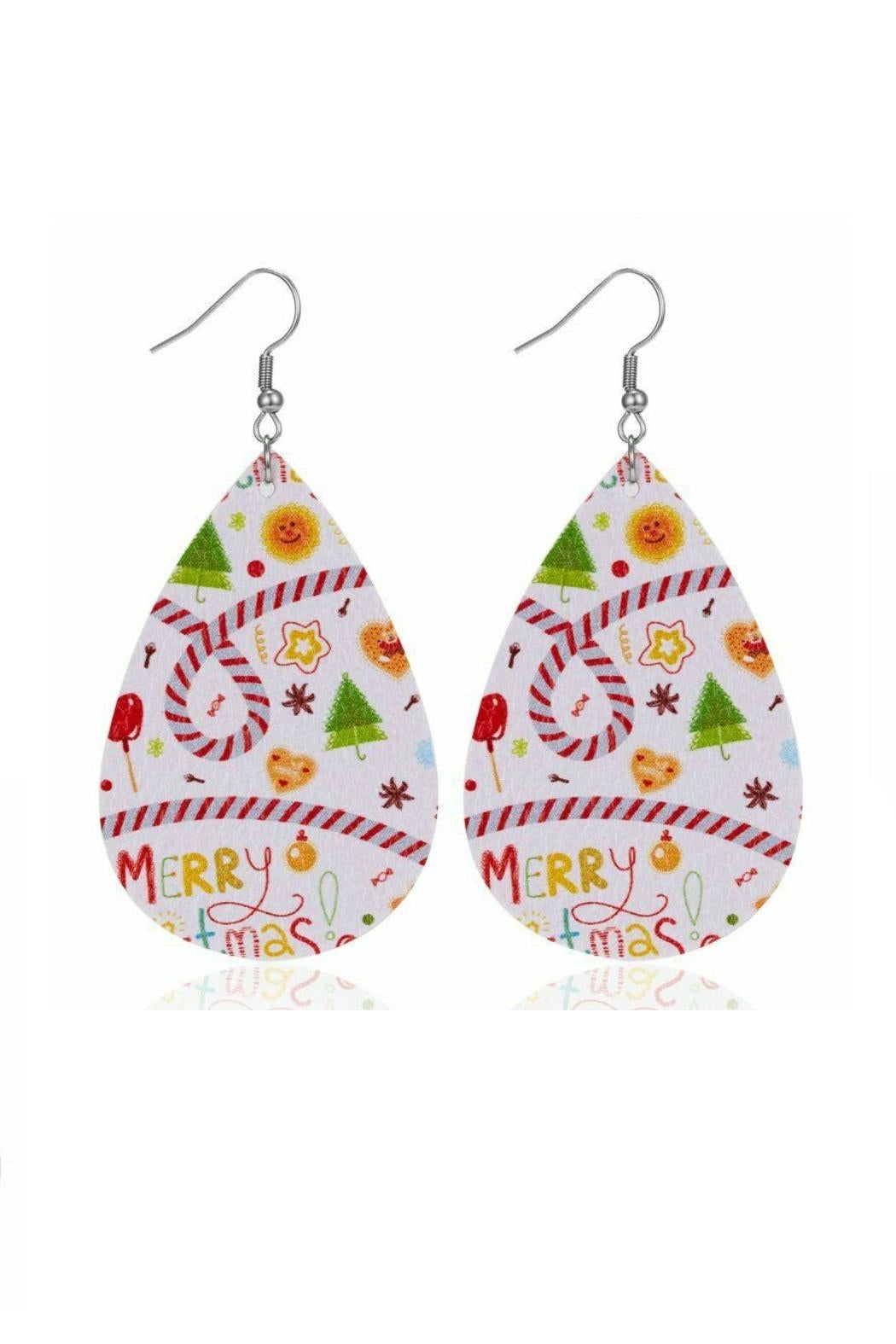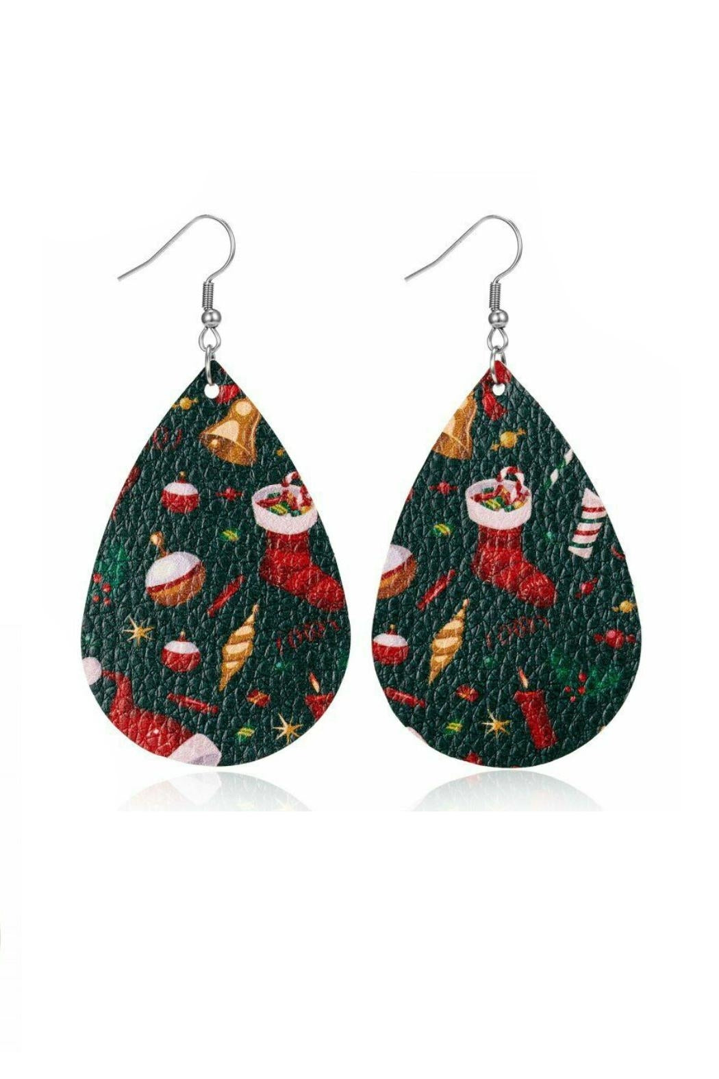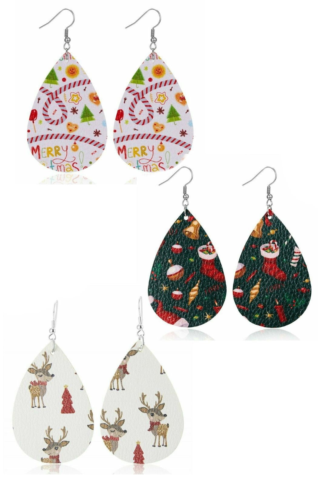 Oh so cute and on trend teardrop shape vegan leather earrings, now made especially for the holiday season. Perfect to pair along with any outfit to add a pop of festive fun to your look. Easy to wear and extremely light-weight for all day comfort. The whimsical print is the same on both sides. Earring hooks are stainless steel. These earrings comply with safety regulations of lead, nickel and other components. Pattern will vary making each pair of earrings unique. Find other moderately priced jewelry on the Mimi's Gift Gallery boutique page. Dimensions: 3" from top of hook to bottom, 1.5" wide at widest point.