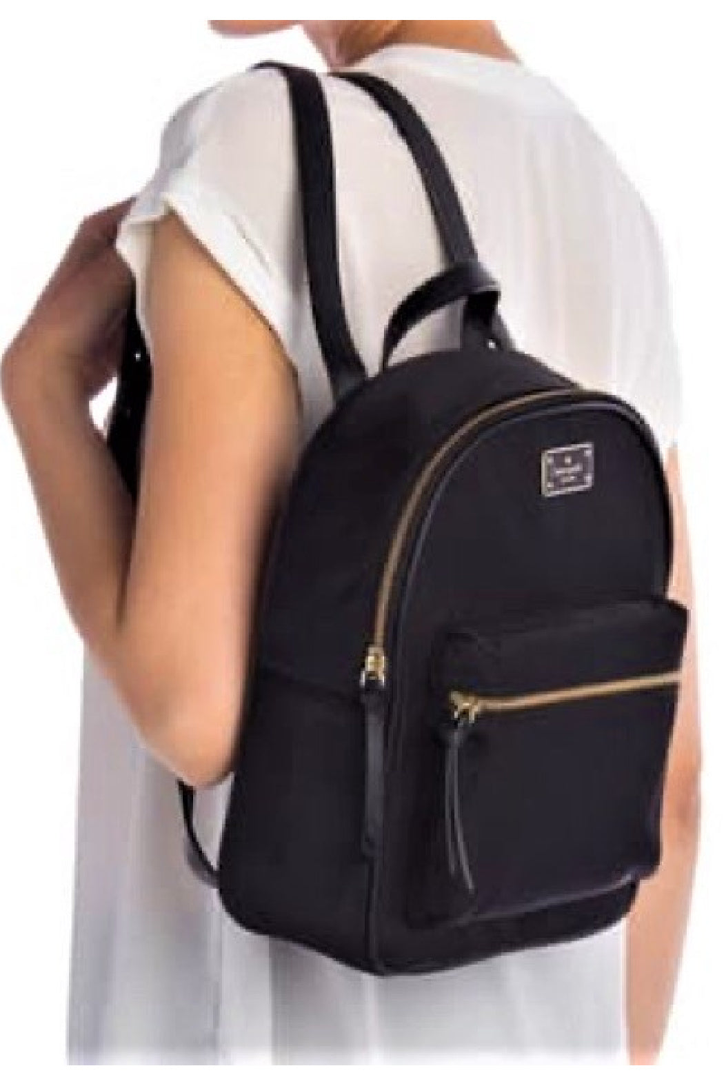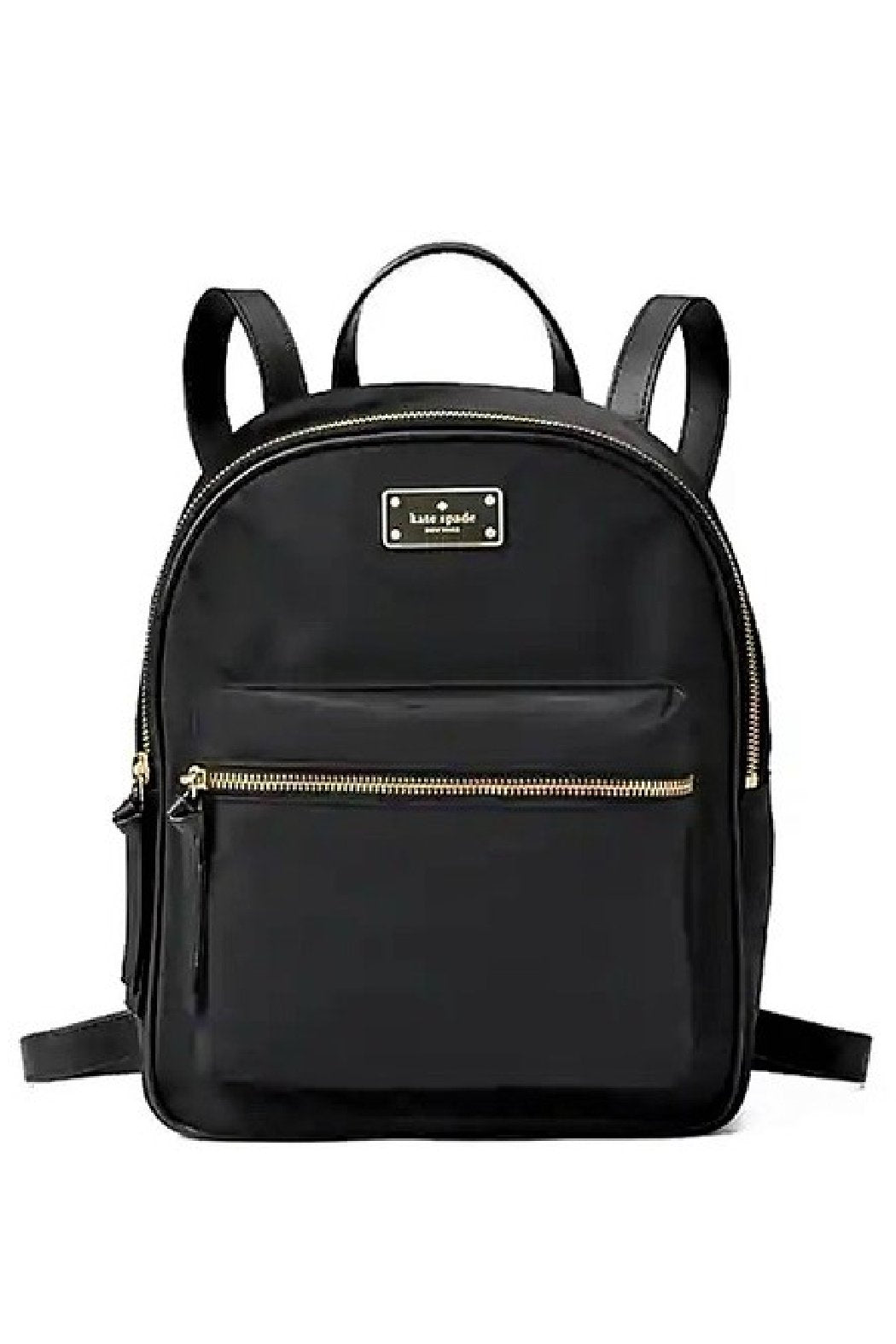 This is the Kate Spade Small Bradley Backpack from the Wilson Road line of products. It is made of tough waterproof nylon and is made to last! - Single top handle - Dual adjustable shoulder straps - Zip-around closure - Exterior features front zip pocket and signature plate - Interior features wall slip pocket, and zip pocket - Signature jacquard Kate Spade Lining - Gold plated hardware and zippers - Leather straps and zipper pulls - Free Shipping! - Handbag sized, not suitable for carrying books - Approx. 11.5" H x 9" W x 4" D - Approx. 3" handle drop, 14-20" strap drop
