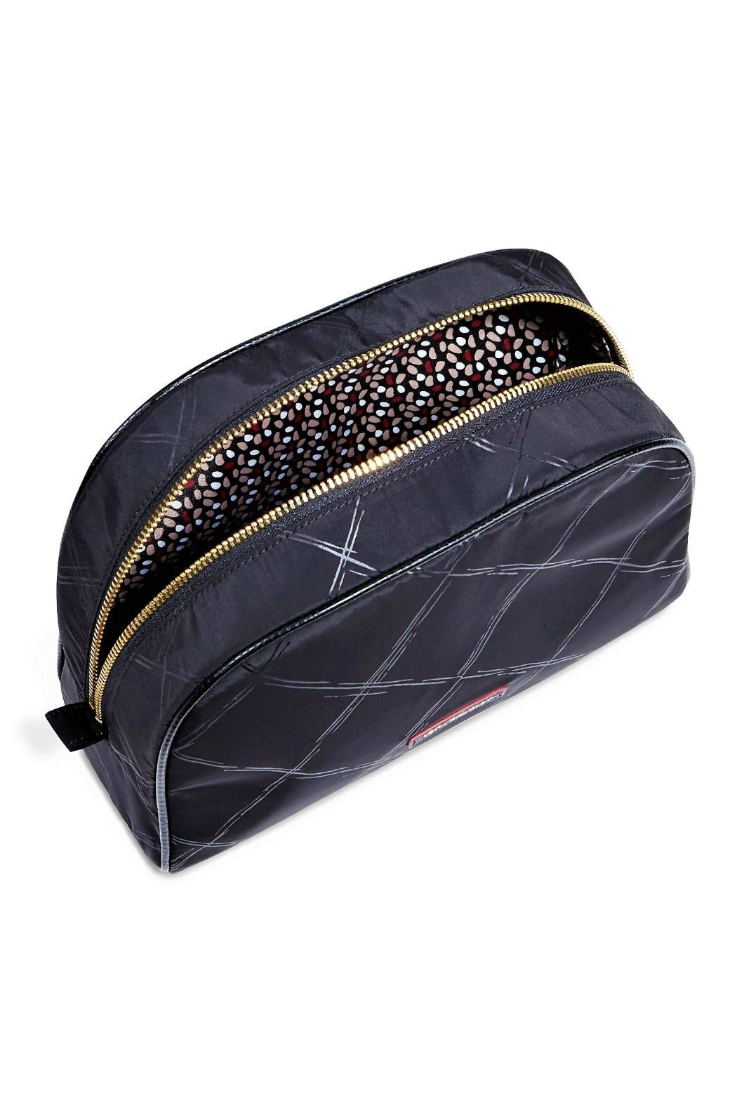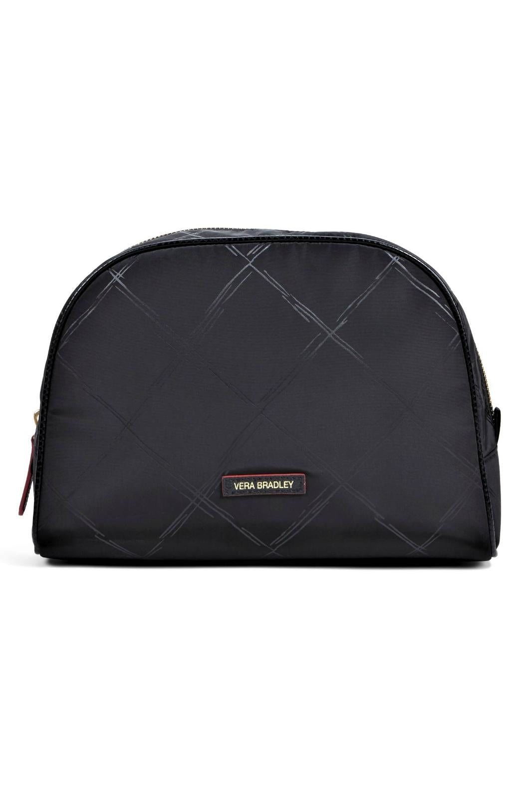 Here is the Vera Bradley Preppy Poly Large Cosmetic Case in Black. This case holds bottles, brushes and all of your girl gear! Pretty and practical--that sounds like a winning combination to us. Preppy Poly fabrication is lightweight and soil and water repellent. Zip closure with gold tone hardware and signature poly twill print lining. Spot clean. Find other Preppy Poly accessories on the "Mimi' Gift Gallery" boutique page. Dimensions: 10" wide x 7 ¼" high x 3 ¾" deep.