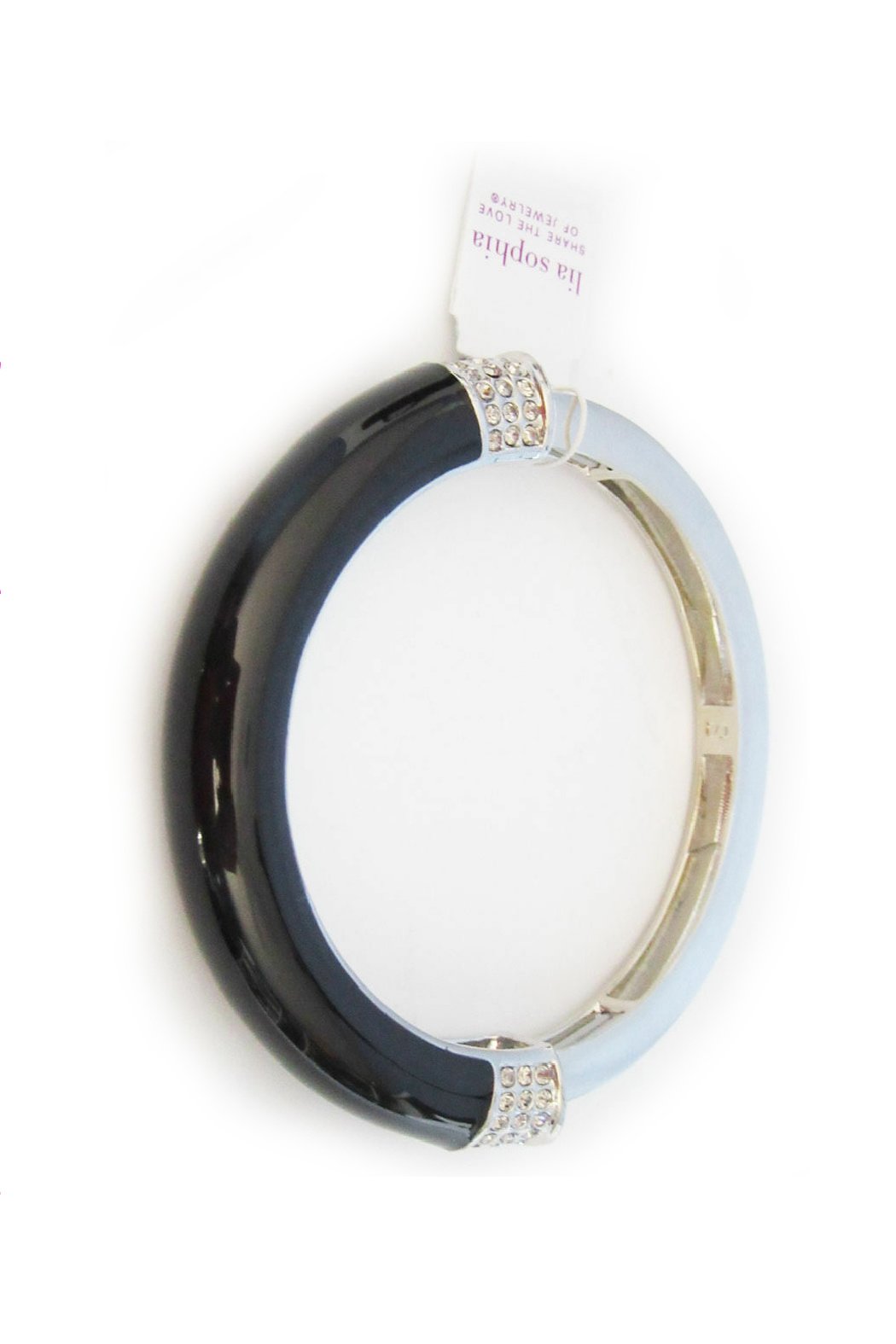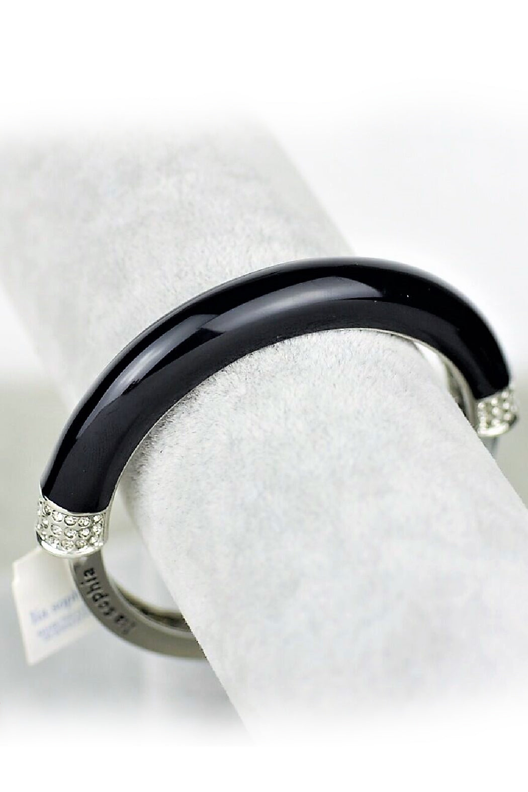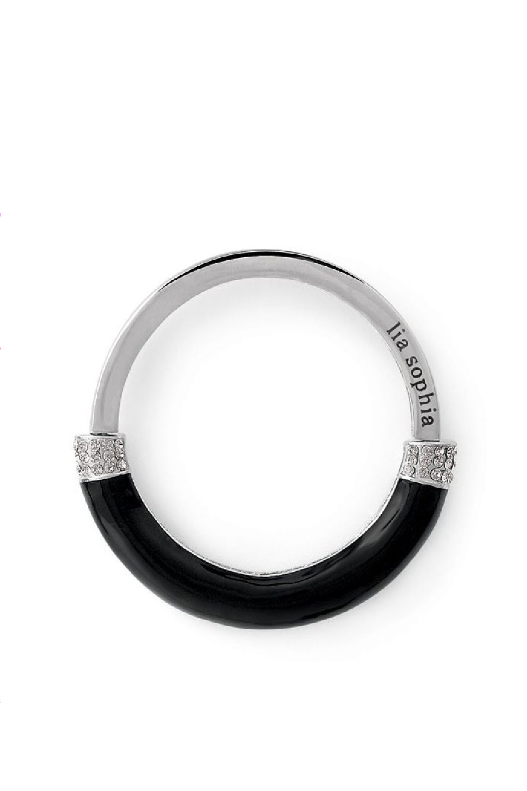 This is the Chromatic Bangle Bracelet from Lia Sophia in Rhodium plated Silver Tone finish. This is a stunning piece of arm candy that will dress up just about anything. Created in two pieces and assembled with elastic, it is easy on and off, but fits very well. It has crystals around both sides of the bangle adding just the right amount of sparkle. Comes in boutique gift box. For more affordable jewelry items, look on the "Mimi's Gift Gallery" boutique page. Fit primarily for small to medium wrists (7-8").