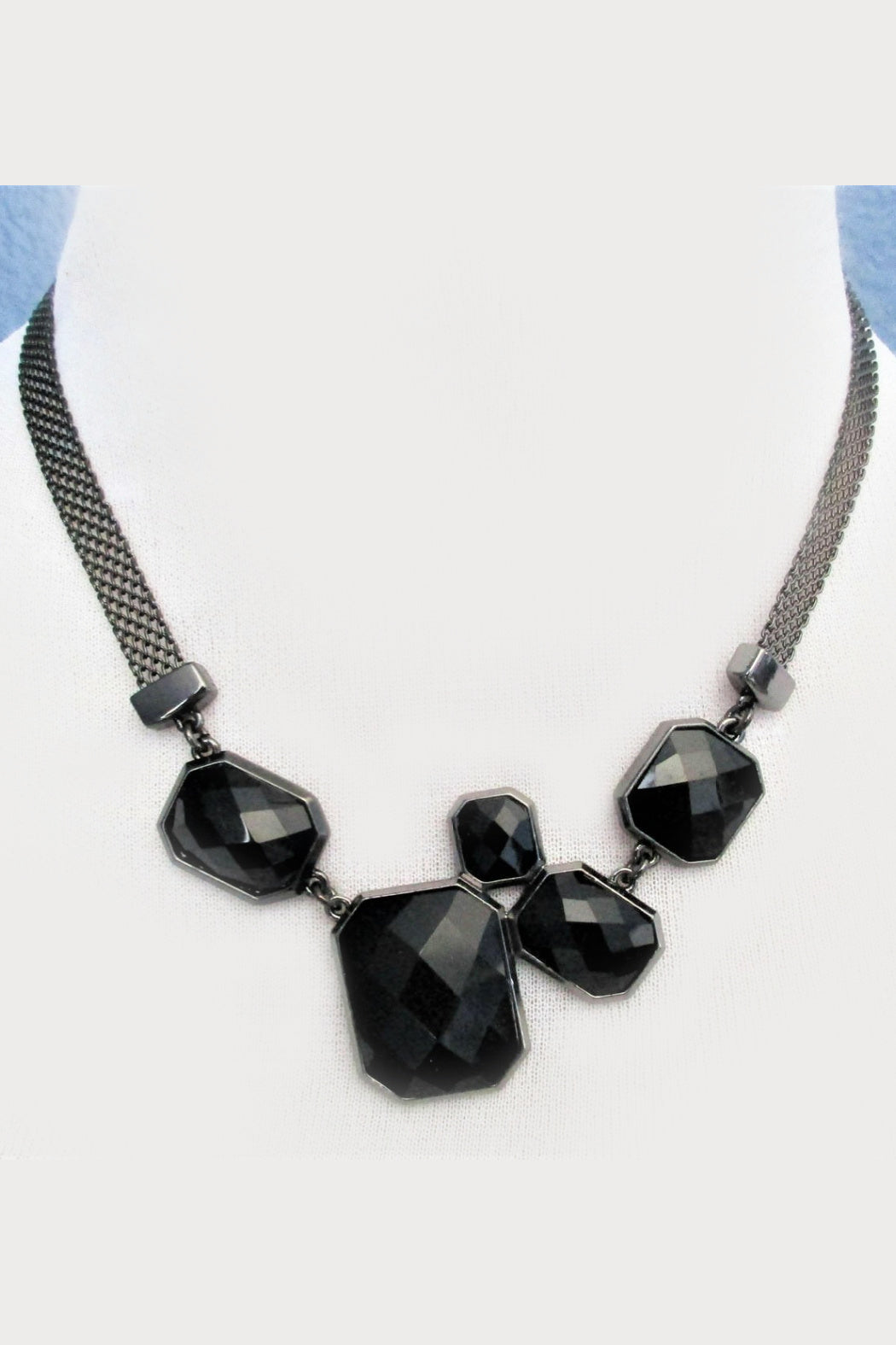 This beautiful black crystal necklace is just what you need as a wardrobe staple! Perfect for any occasion, or when you just want to feel pretty! Various shaped focals of crystal glass, set in gunmetel hardware that give it an edge, this is a winner you'll depend on for years to come. This is the Lia Sophia "Tuxedo". The necklace is approximately 17" in length with lobster claw fastener and 3" extender. "Lia Sophia" charm on fastener. We handmade the earrings to perfectly match with black glass and gunmetel beads. Stainless Steel Fish hook style, earrings are approx. 2" long. Lead and nickel compliant. Comes in Lia Sophia gift box. Find lots of moderately priced jewelry on the "Mimi's Gift Gallery" boutique page.